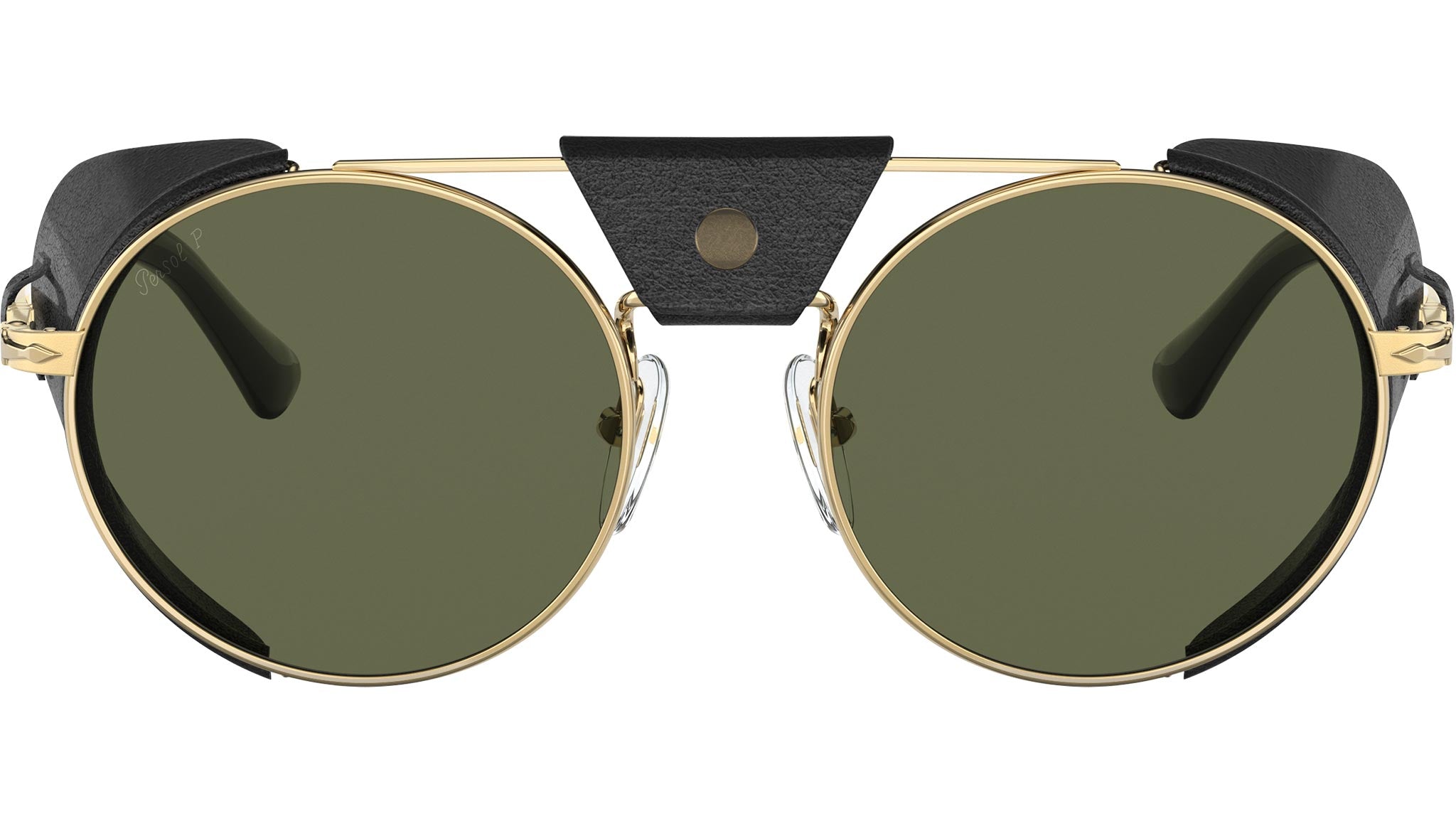 Occhiali da sole Persol modello PO2496SZ codice colore 114958 con montatura color oro full rim metallo e lenti in vetro color verde.