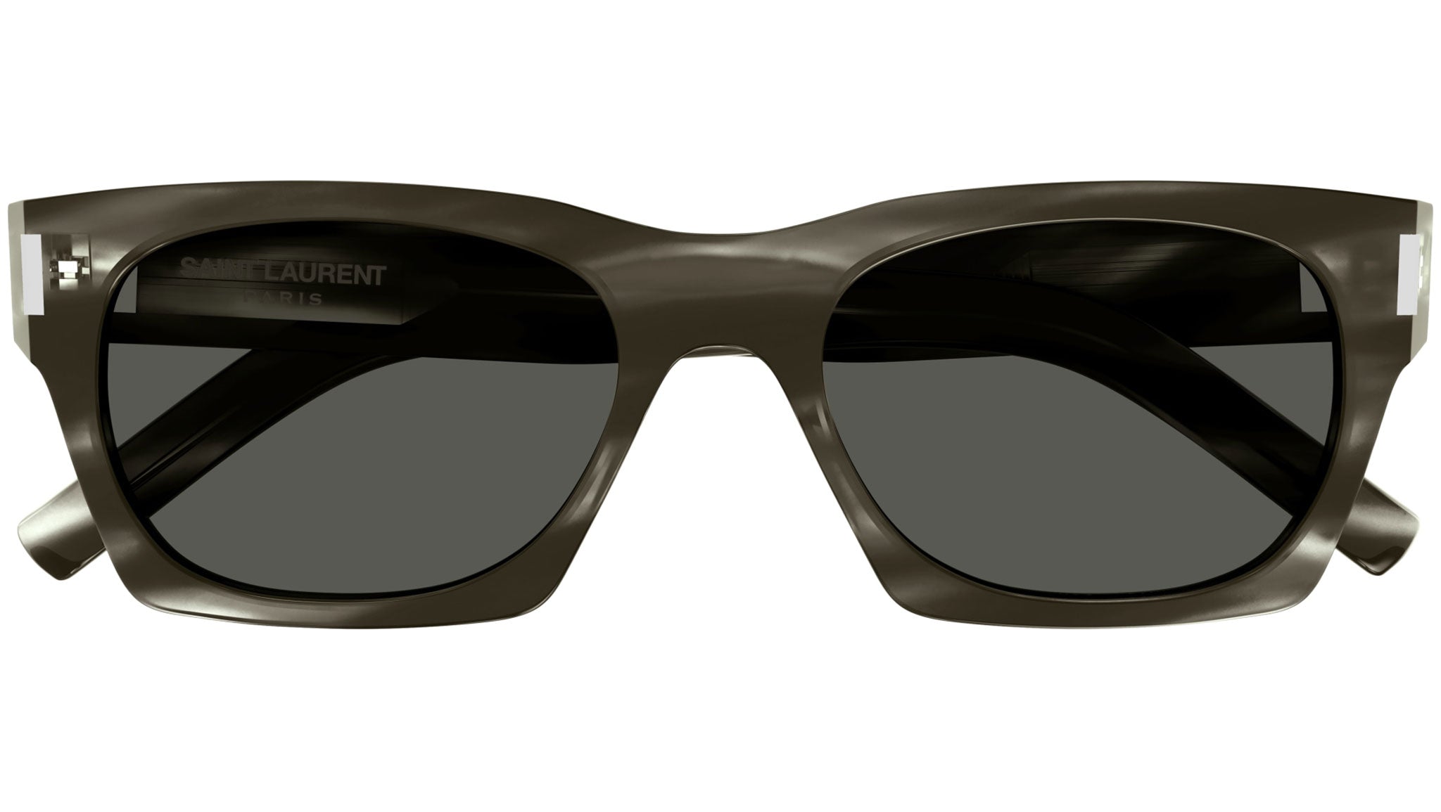 Occhiali da sole Saint Laurent modello SL 402 linea New Wave codice colore 017 grigio striato lucido in acetato forma rectangle con lenti color grigio tinta unita.