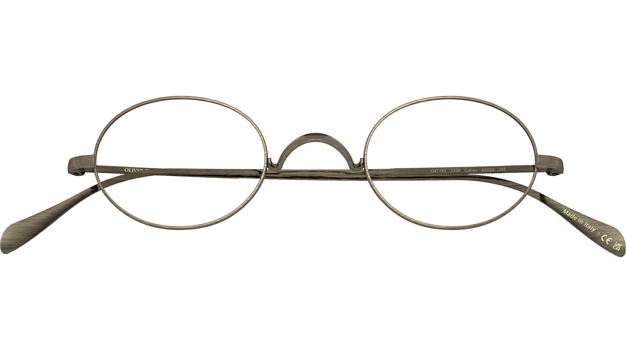 Oliver Peoples men's eyeglasses model 1185 with full rim antique gold metal frame and base 4 demo lenses. Universal fit. Line: Essentials. Model code: OV1185. Color code: 5338. Authorized Oliver Peoples dealer. Every Oliver Peoples product comes with an original case and accessories and is covered by a 12-month manufacturer's warranty.