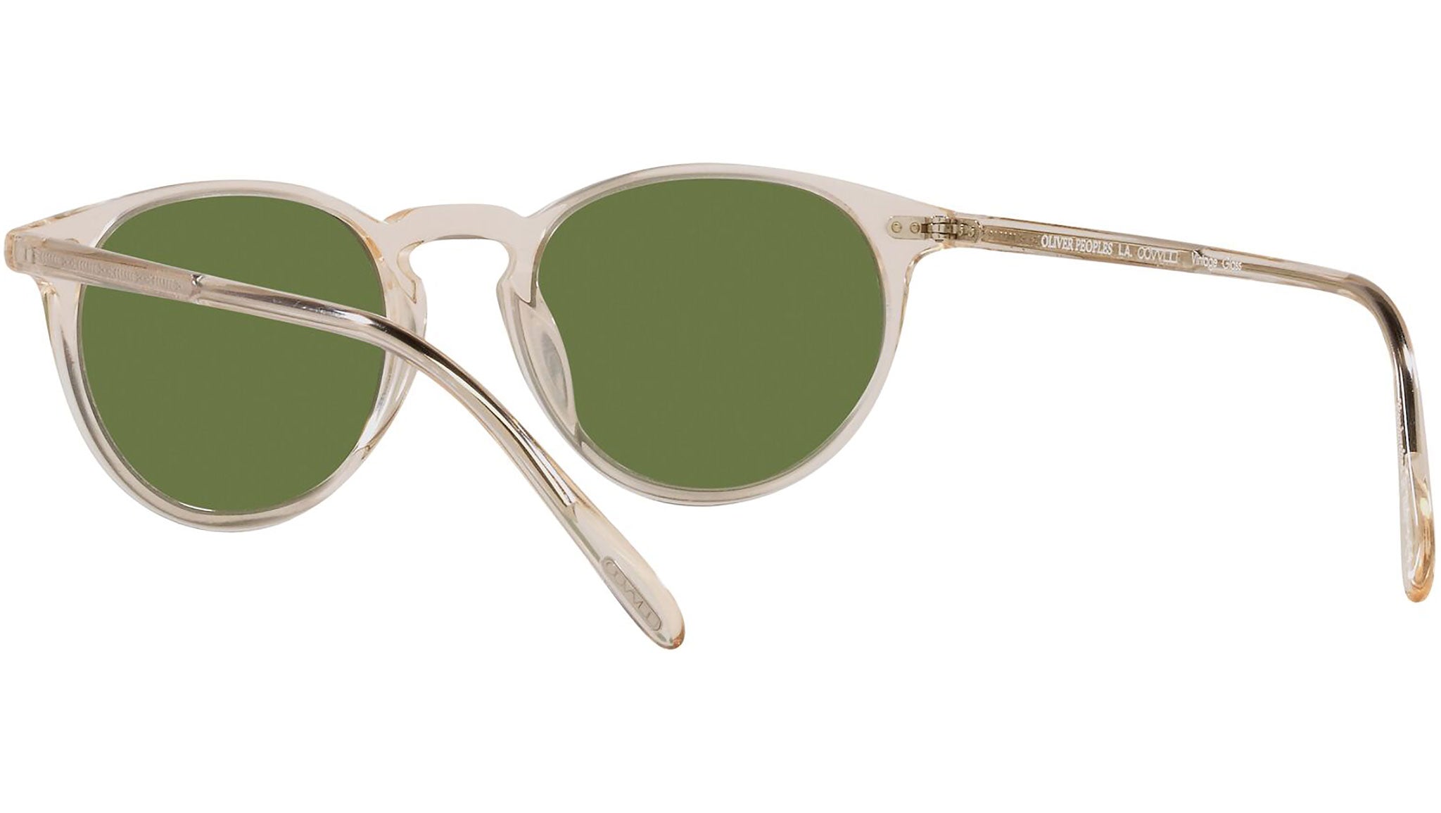 For the first time, Oliver Peoples’ iconic Riley is offered as a sunglass. Featuring the same iconic details as the optical version, the Riley Sun perfectly expresses the Oliver Peoples aesthetic in its color palette, lens shape and refined details. Custom Oliver Peoples filigree work engraved on the metal core. Universal adjustable nose pads for a better fit. Polarized crystal lenses reduce glare and optimize visual clarity. Multi-coated for 100% UVA/UVB protection and branded with a logo that is only visible when seen through the lens.