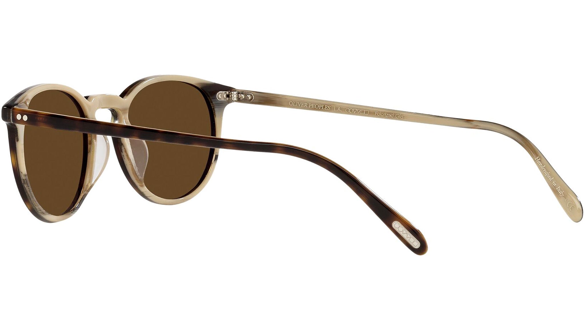 For the first time, Oliver Peoples’ iconic Riley is offered as a sunglass. Featuring the same iconic details as the optical version, the Riley Sun perfectly expresses the Oliver Peoples aesthetic in its color palette, lens shape and refined details. Custom Oliver Peoples filigree work engraved on the metal core. Universal adjustable nose pads for a better fit. Polarized crystal lenses reduce glare and optimize visual clarity. Multi-coated for 100% UVA/UVB protection and branded with a logo that is only visible when seen through the lens.