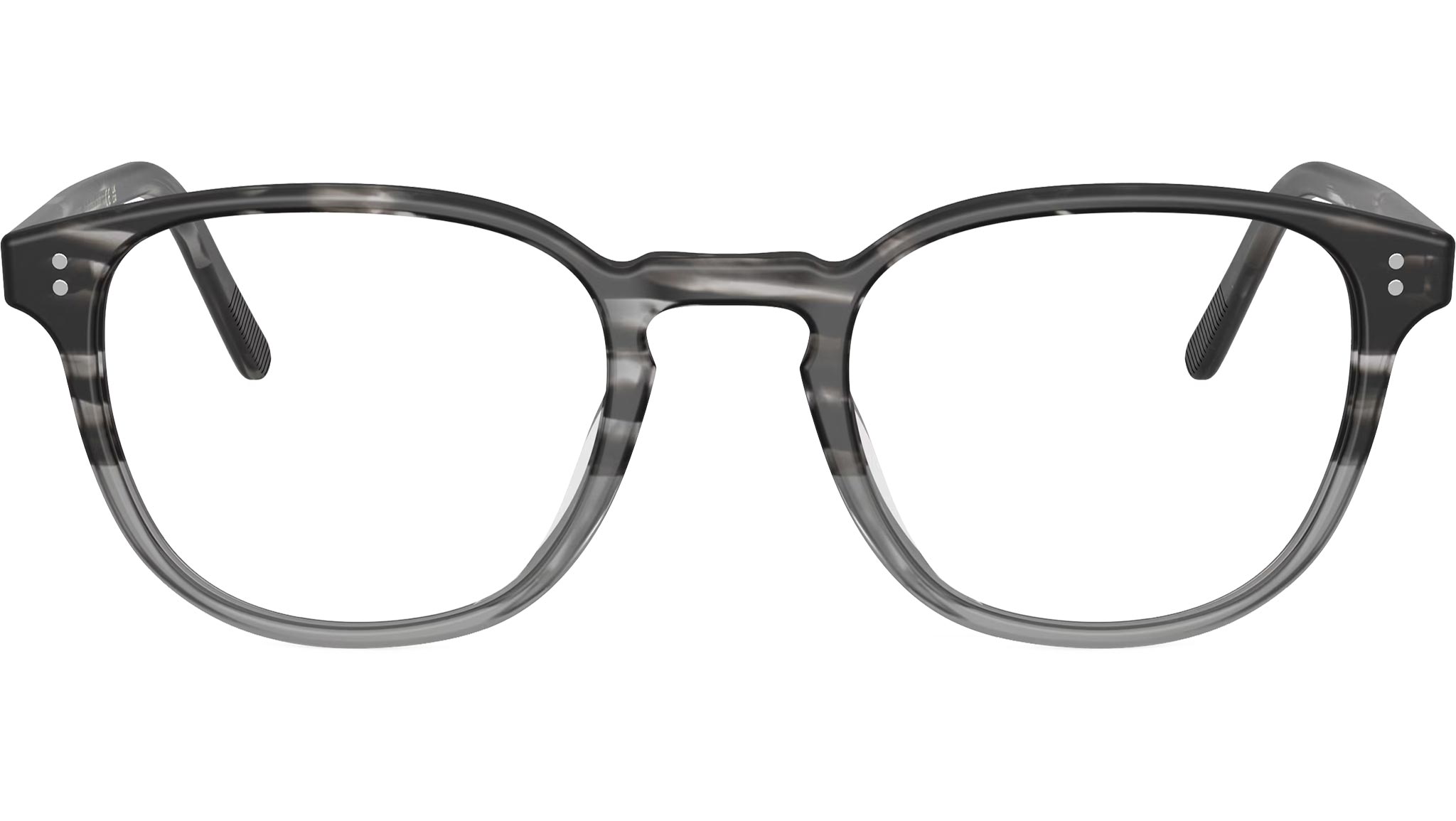 Oliver Peoples Fairmont men's eyeglasses model 5219 with semi-matte gray full rim acetate frame and base 4 demo lenses. High bridge fit. Line: Essentials. Model code: OV5219. Color code: 1124. Authorized Oliver Peoples dealer. Each Oliver Peoples product comes with original case and accessories and is covered by 12 months manufacturer's warranty.
