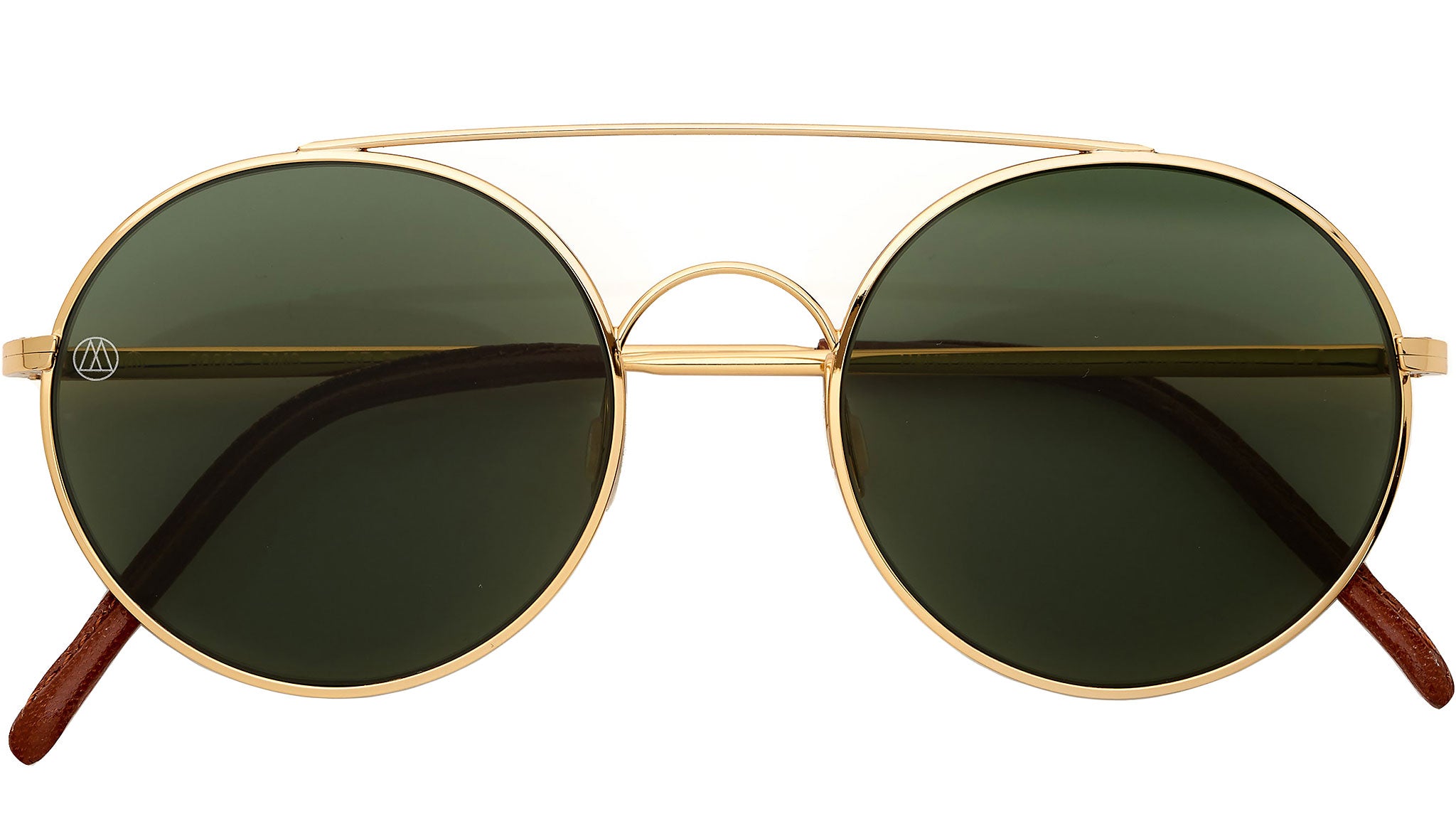Ottomila eyewear sunglasses model 8M6/GDS (Gold). LENS: Barberini Ultra Flat tempered mineral glass lenses, Forest Green color. Interior anti reflection coated, 100% UV protection, Filter category 3, infrared protected, assured for driving. FRAME: Hypoallergenic metal treatment, GOLD Shiny color. Ultra light, flexible Metal arms. Ergonomic Silicon nose pads. Hand made leather temple tips, Brown. SIZE: Lens size 49mm (1. 92 inches), total front width 130mm (5. 1 inches), temple length 134mm (5. 27 inches). The flexible temples are specially designed to flex once worn the glasses in order to have a good support on the head without exerting too much pressure. Hand made in Italy. CASE: Genuine leather pouch, Brogue Brown. The box also contains an extra set of silicone nose pads, high quality cleaning cloth and information cards. Limited Edition: each model is produced as a limited edition, with no more than 8,000 copies. As testimony to its uniqueness, each product is marked with a serial number.umber lasered on the inside of tSizes: S Lens Width: 49 mm Frame Front: 146 mm Frame Side: 135 mm Product Code Size S: 5KC