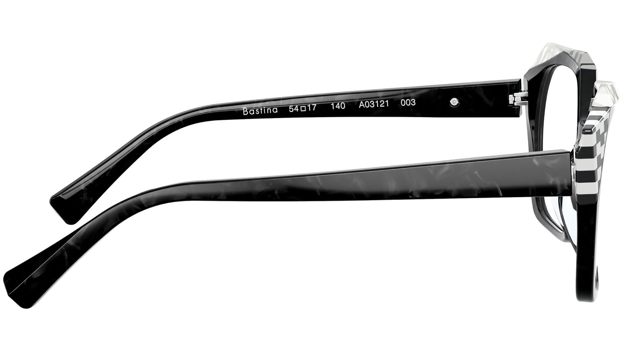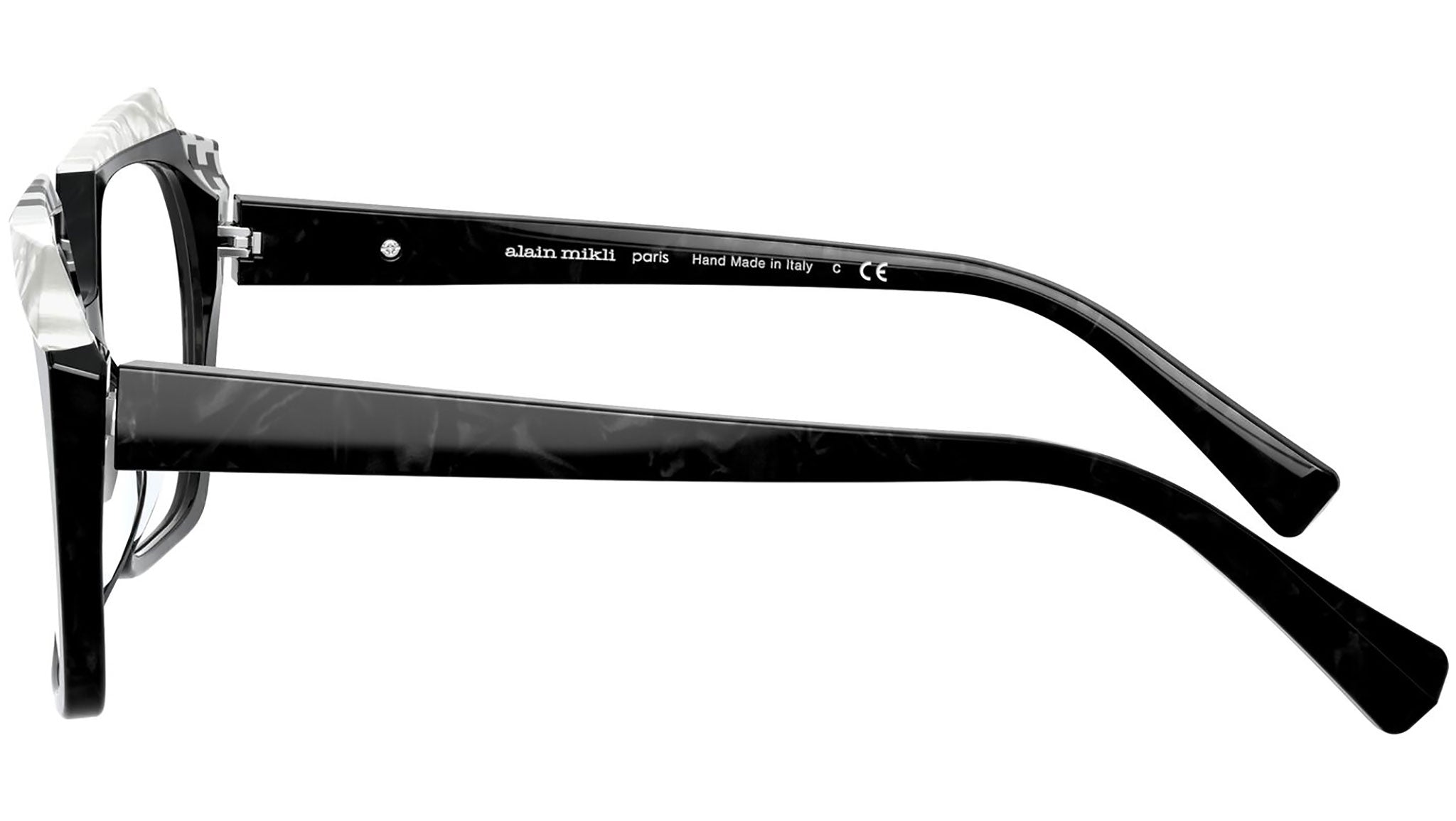 Alain Mikli eyeglasses model A03121 color variant black Mikli / black / white, color code 003. Alain Mikli was the first brand to support the idea of glasses as an accessory. From the fusion of art and fashion are born frames that have always been synonymous with uniqueness and provocation, characterized by original design and exclusive color combinations.