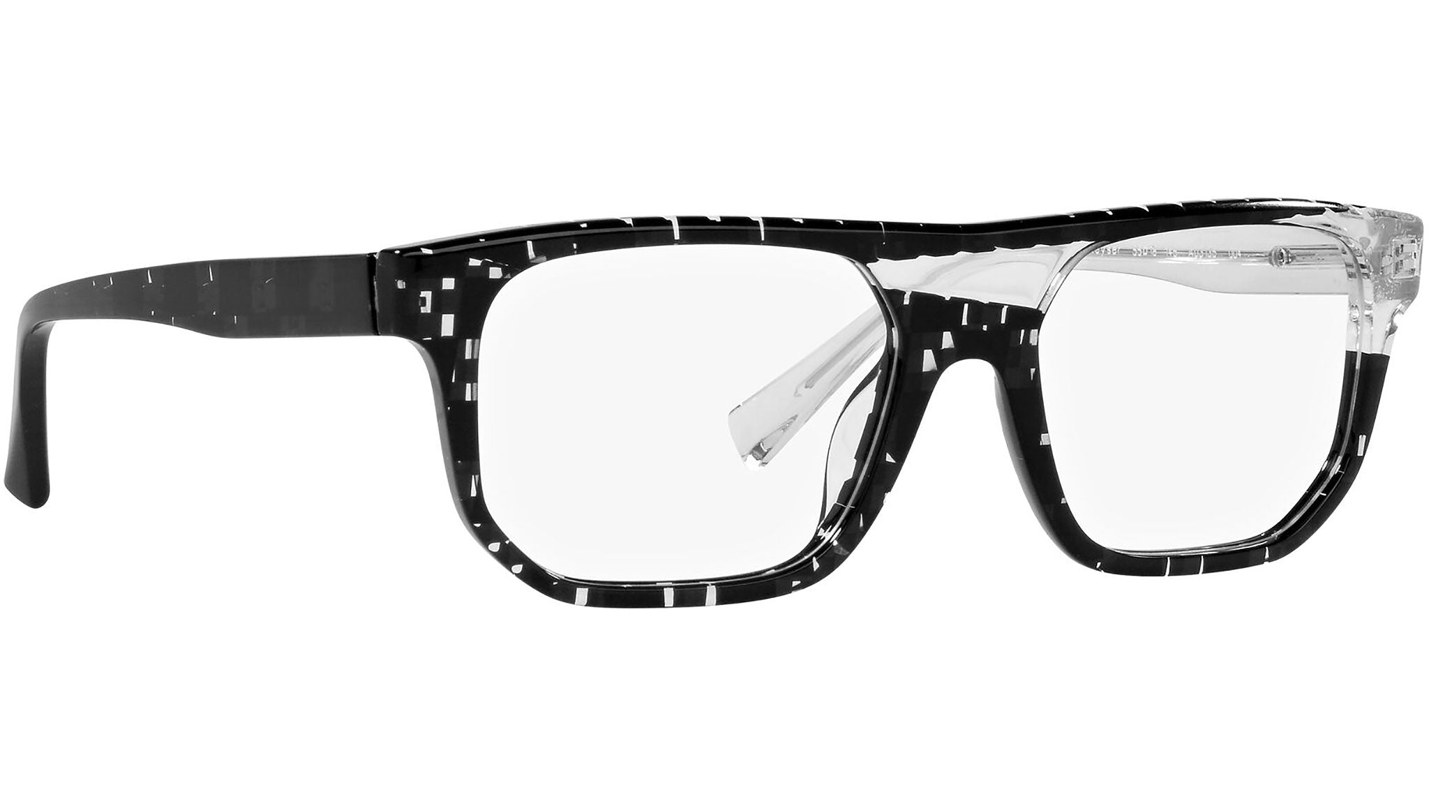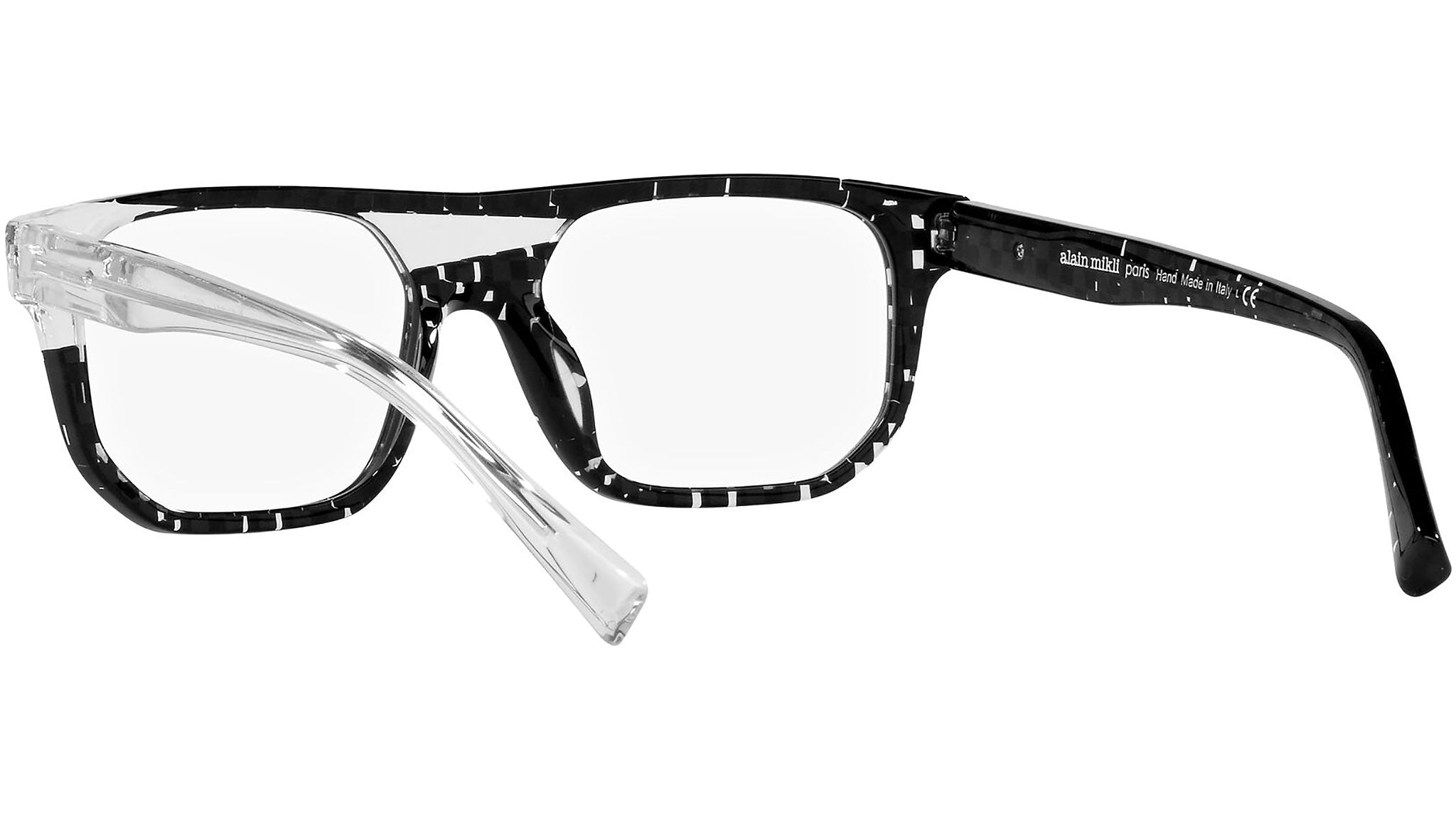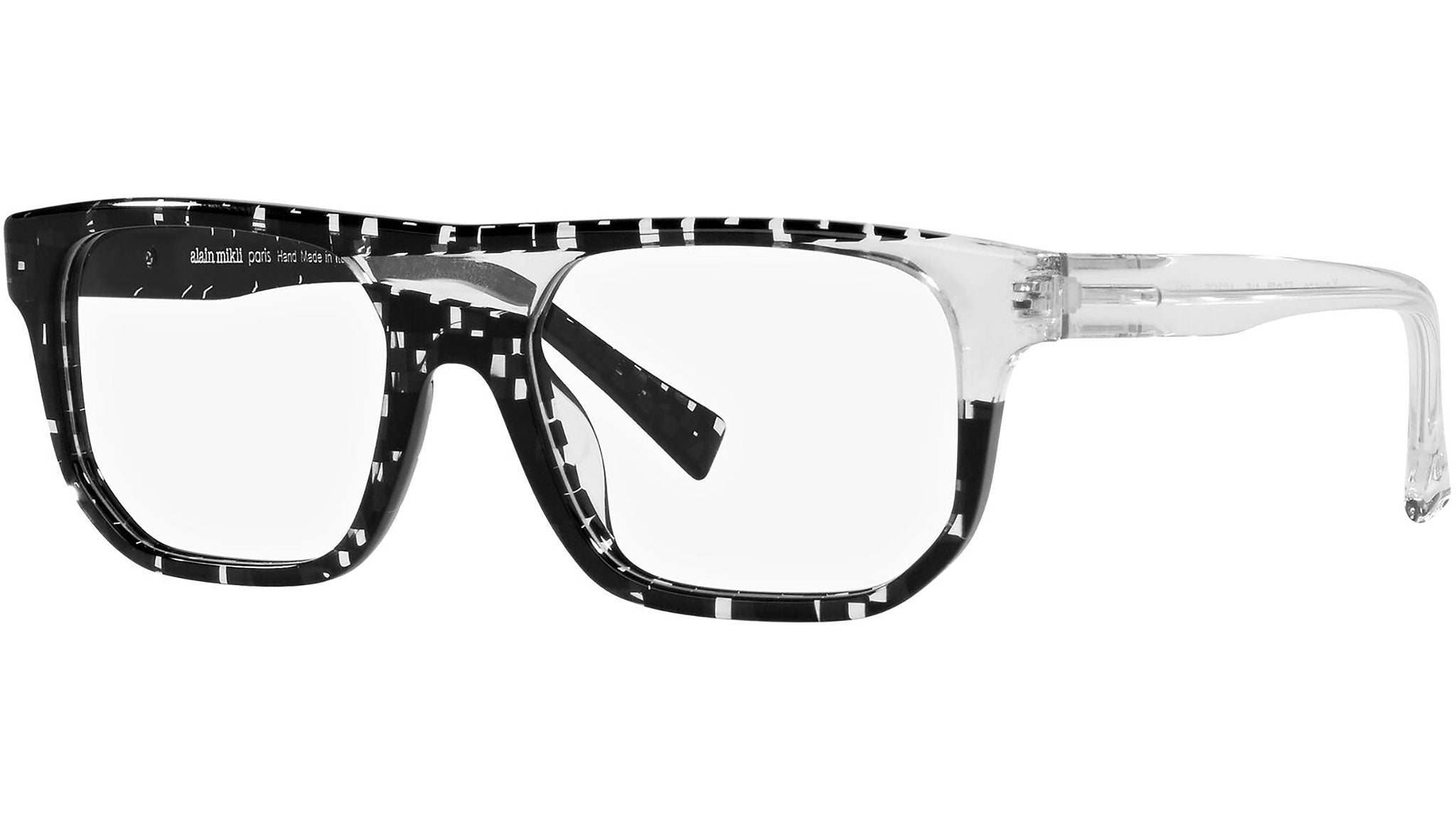 Alain Mikli eyeglasses model A03135 color code 004, black and transparent checkered color variant. Alain Mikli was the first brand to support the idea of glasses as an accessory. From the fusion of art and fashion come frames that have always been synonymous with uniqueness and provocation, characterized by original design and exclusive color combinations.