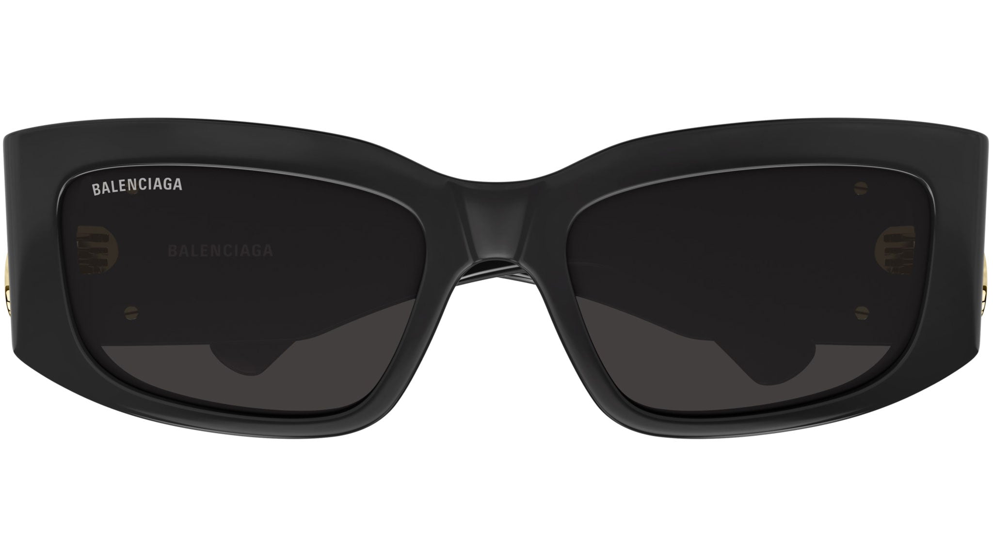 Balenciaga sunglasses model BB0360S Everyday line color code 005 shiny black solid color in recycled acetate rectangular shape with black temples and solid color gray lenses. Authorized Balenciaga online dealer. The glasses are delivered with original case and accessories and are covered by the official 12-month manufacturer's warranty.