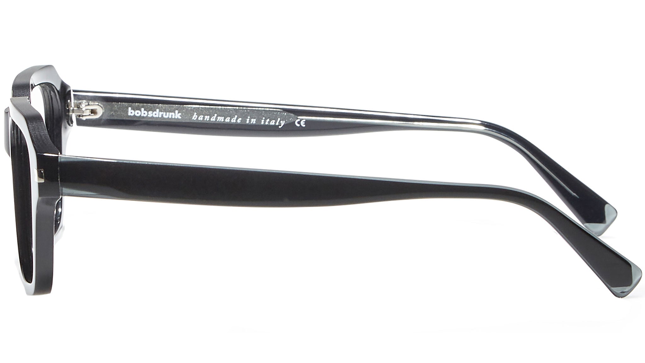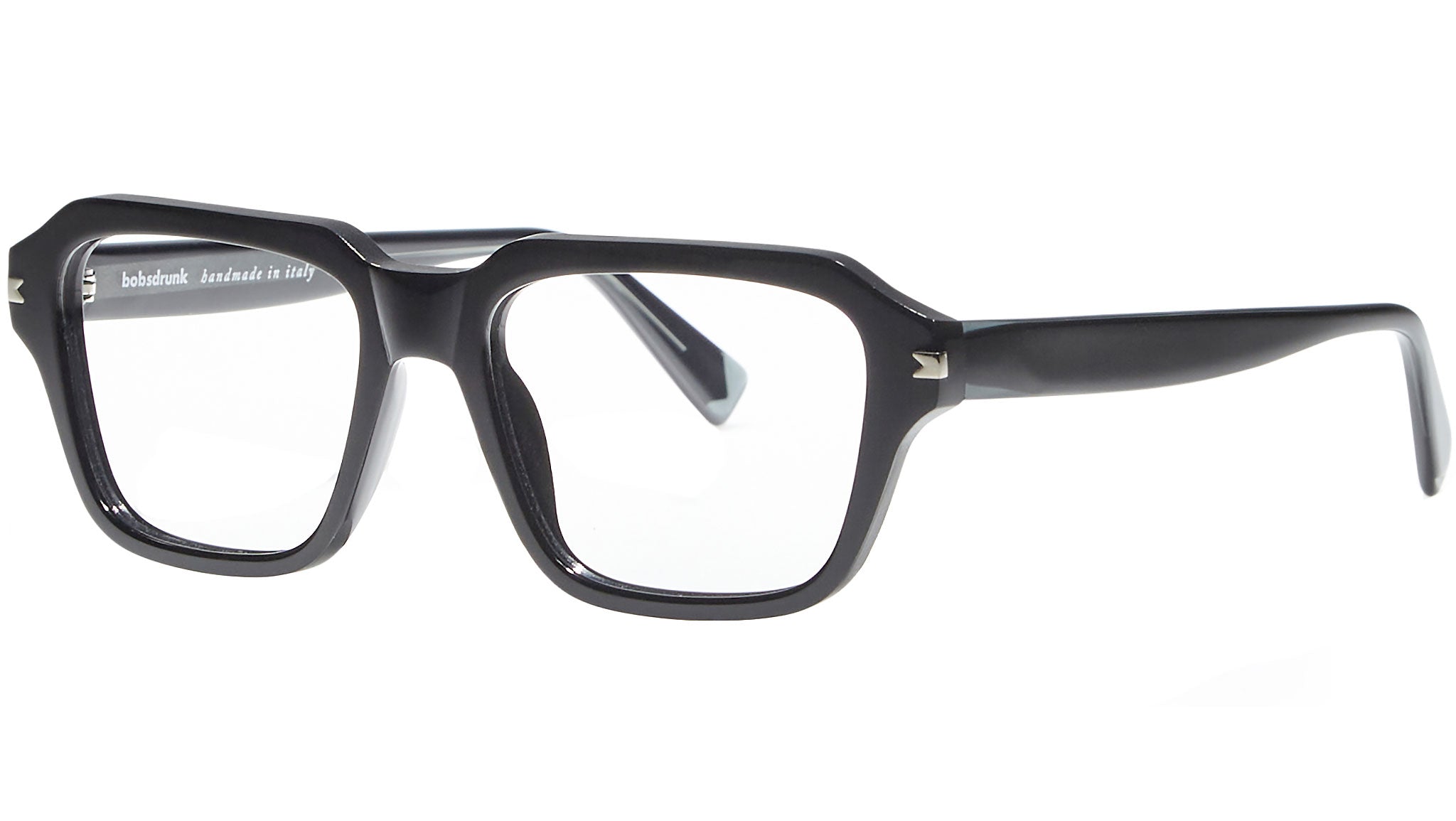 Bobsdrunk Cain optical frame color code 01 in black. Timeless products and bold shapes coexist in this original Eyewear collection. The lines are masterfully designed to create an effect of bold lightness. Each pair of Bobsdrunk glasses is characterized by an emblematic detail, shown on the front and on the tip of the temples, which highlights the value of the brand. It represents the union of the initial and final letter of Bobsdrunk in an iconic symbol. The careful choice of materials, the selection of craftsmanship and a constant chromatic research are the prerogatives of each Bobsdrunk creation.