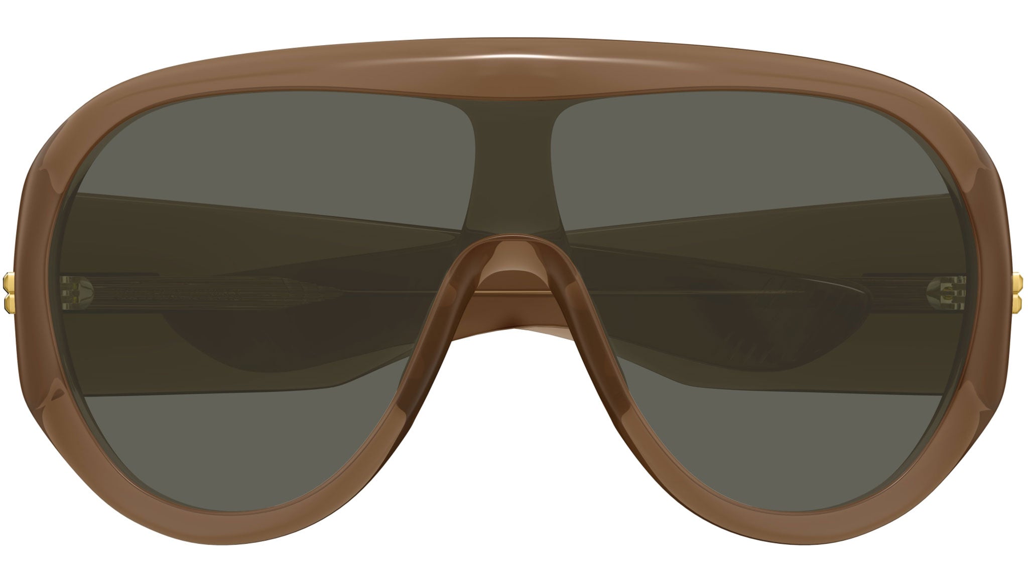 Bottega Veneta sunglasses model BV1345S in recycled acetate mask shape color code 005 transparent caramel shiny with solid gray mask lenses. Authorized Bottega Veneta online dealer. The glasses are delivered with original case and accessories and are covered by the official 12-month manufacturer's warranty.