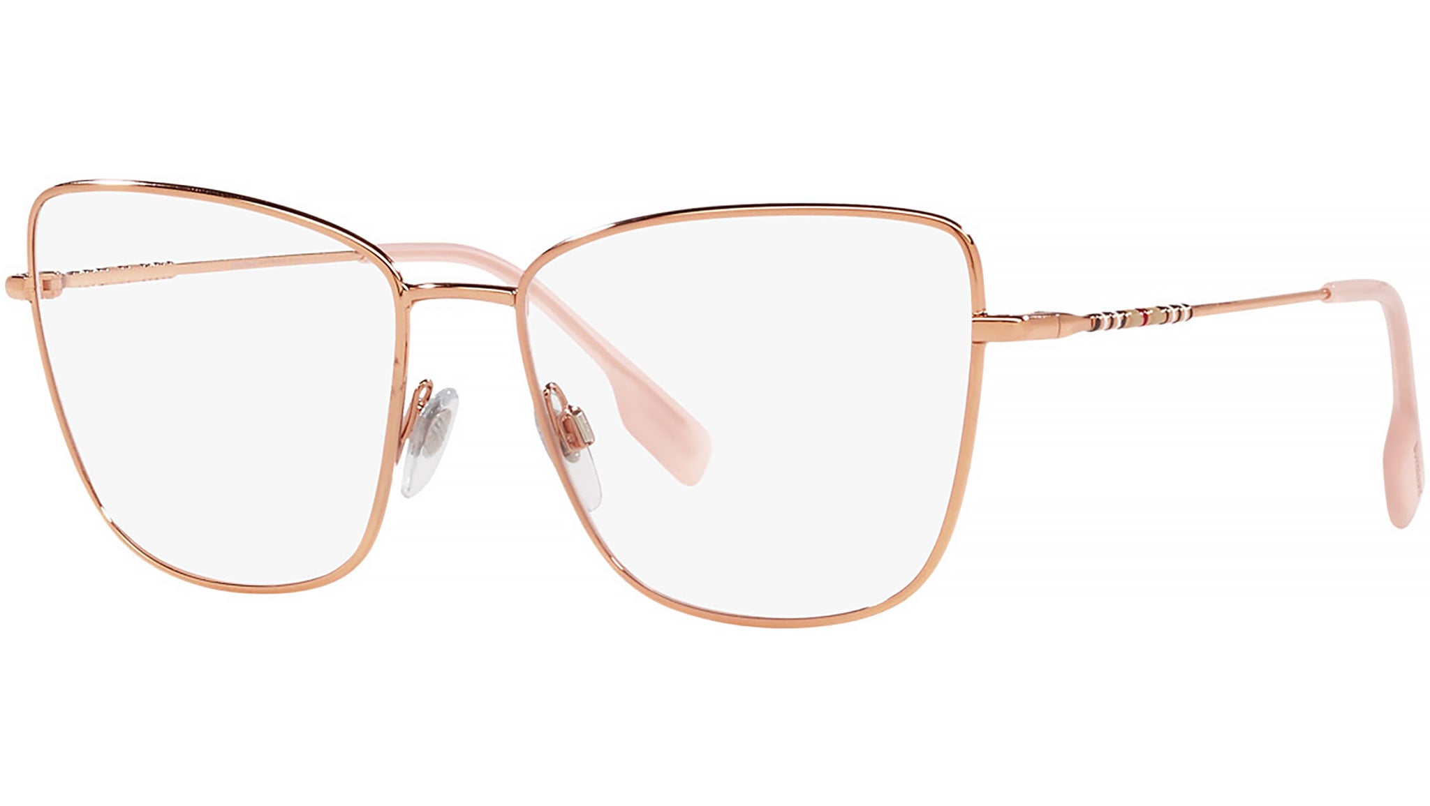 Montatura da vista Burberry Bea linea Classic Reloaded modello BE1367 codice colore 1337 con frame full rim in metallo color oro rosa e lenti demo. Scopri l'essenza del più tradizionale stile britannico con gli occhiali da vista firmati Burberry, un'accattivante collezione eyewear di stili originali, da uomo e da donna. Burberry offre una selezione accurata di silhouette classiche e contemporanee, adatte a soddisfare le più diverse preferenze. Dagli eleganti modelli full-rim a quelli semi-rimless, la varietà di montature in acetato o in metallo esprime tutta la raffinatezza del brand. Fin dalla sua fondazione nel 1856, Burberry è il simbolo globale del lusso britannico, rinomato per il suo ricco patrimonio e la passione per la vita all'aria aperta. Oggi, guidata dal direttore creativo Daniel Lee, Burberry continua a ridefinire il panorama della moda, interpretando lo stile britannico moderno, con i suoi codici distintivi e i suoi modelli iconici.