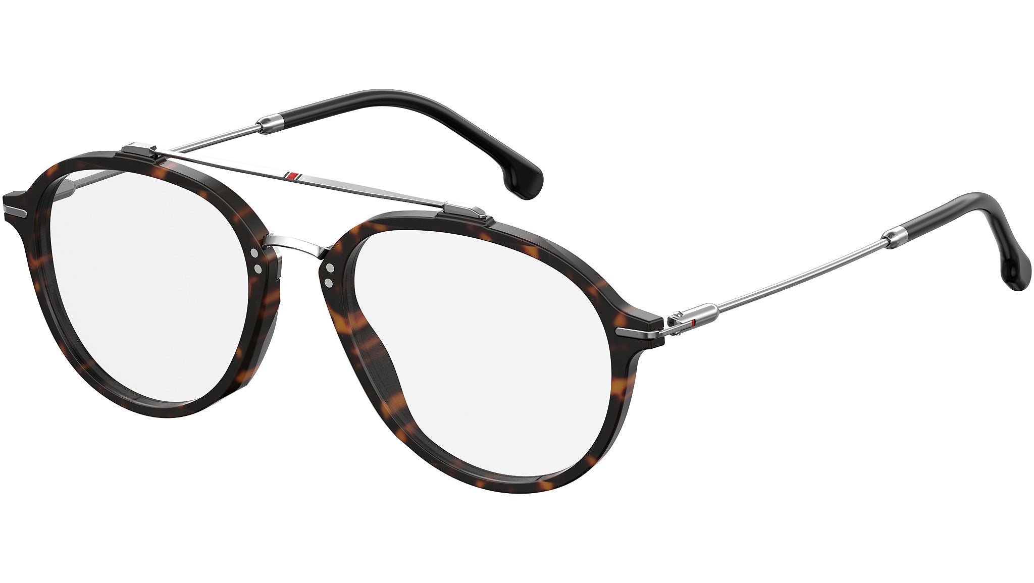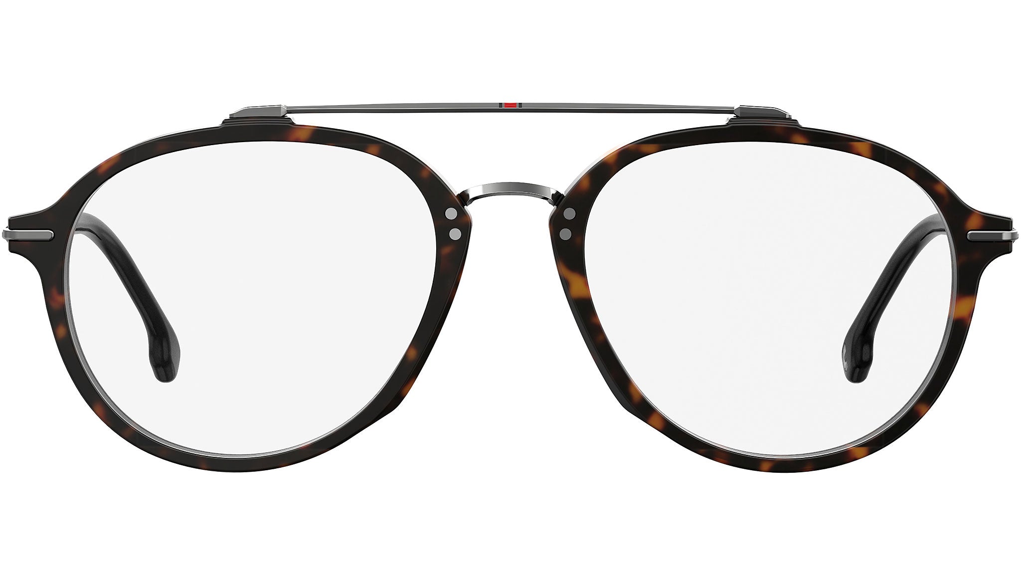 Expertly combining the quality that has always distinguished the brand with the iconic navigator profile, these men's optical glasses from the new Carrera collection ensure a noteworthy look. The teardrop frame with a vintage allure combines an ultra-lightweight front in high-density acetate with metal temples, acetate tips and a distinctive double bridge featuring the iconic Carrera flag. The flexible TANK hinges — inspired by the shapes of the fuel tanks of café racer motorcycles as a tribute to the world racing scene — make these optical glasses extremely comfortable and easy to wear, while the C-logo on the inside of the left tip adds an additional touch of style.