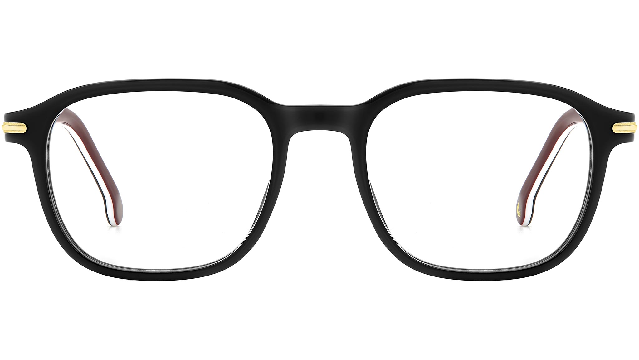 Carrera eyeglasses model 320 color GUU black burgundy. These eyeglasses return to the essence of the Carrera spirit, essential but no less distinctive or less refined. Their rounded profile is an evergreen that does not give up on standing out: in fact, you can see the metal insert with the “C” in relief on the front, a true Carrera signature. The flexible hinges ensure a comfortable and stable fit. The model is available in a multilayer, transparent and shaded version.