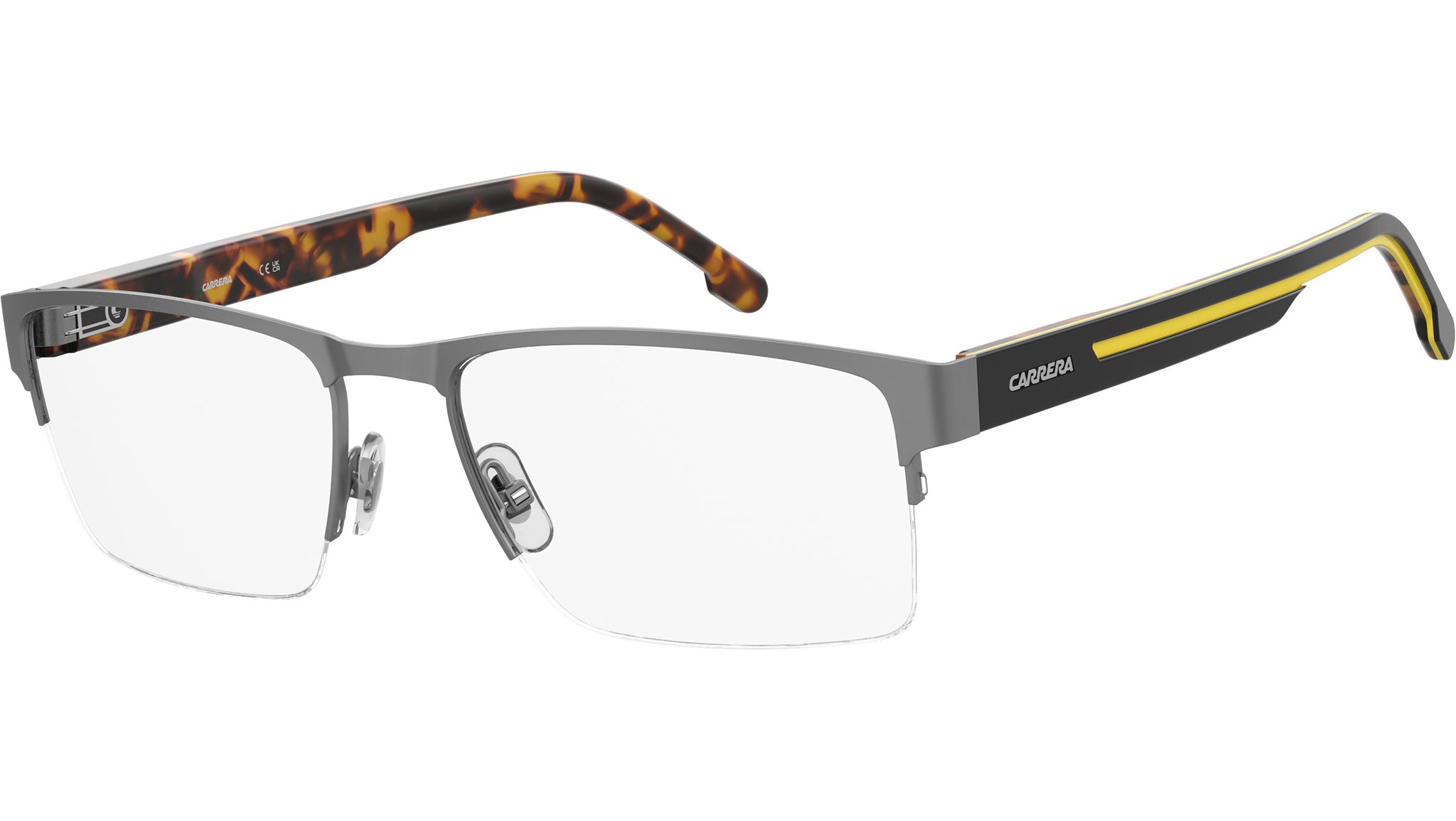 Occhiali da vista Carrera 8914 FMR uomo con montatura rettangolare in metallo giallo rutenio scuro opaco e lenti demo. Carrera prende molto sul serio il comfort e la versatilità: il risultato è questo occhiale da vista con frontale a mezza montatura. La vestibilità è personalizzata grazie a naselli regolabili, cerniere flessibili e la possibilità di scegliere tra due diversi calibri. Lo stile è definito dalle nuove aste in acetato, scolpite a mimare la flag Carrera. Da scegliere tono su tono, blu, oppure in rosso - colore simbolo Carrera. Linea: Sport. Codice modello: 109536. Codice colore: FMR. Rivenditore autorizzato Carrera online. Gli occhiali vengono consegnati con custodia e accessori originali e sono coperti dalla garanzia ufficiale di 12 mesi del produttore.