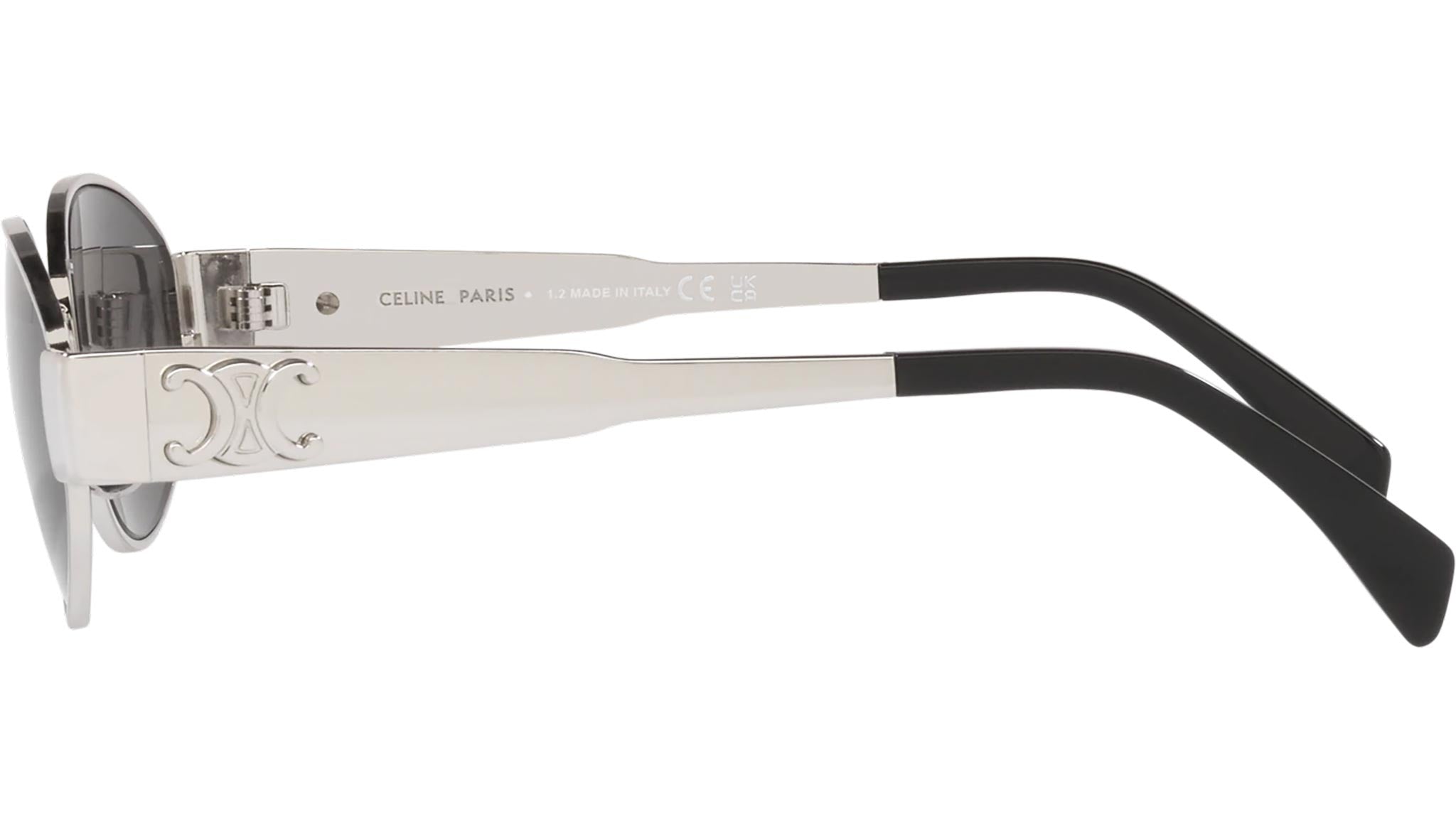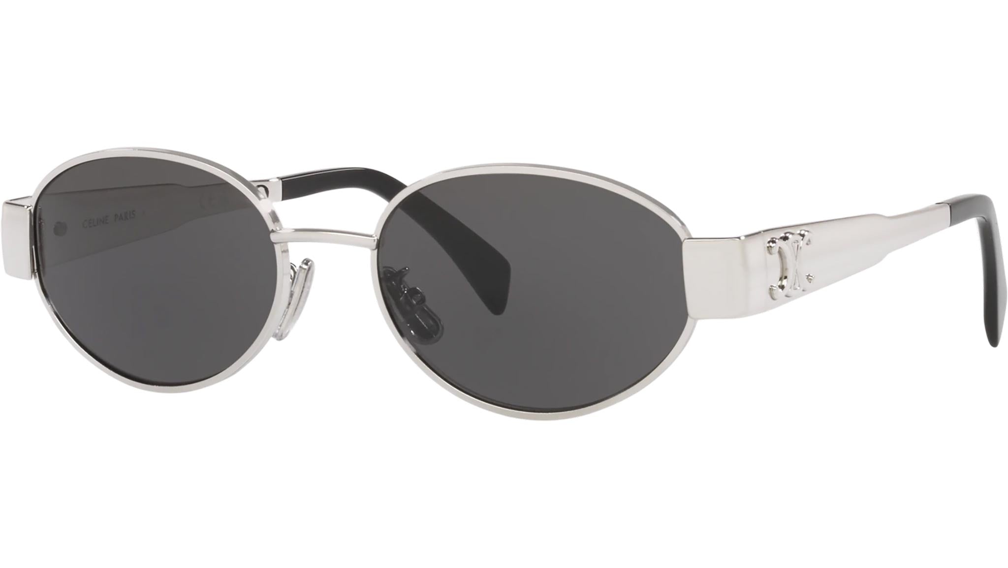 CELINE women's sunglasses CL40235U Metal Triomphe line color 16A silver. New Triomphe logo on the temples. Authorized CELINE online dealer. The glasses are delivered with original case and accessories.