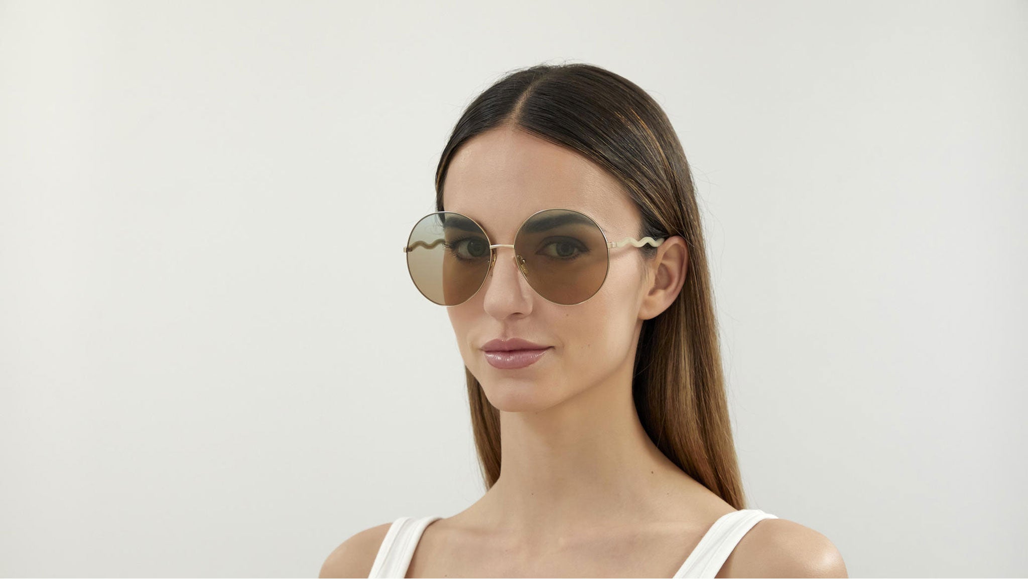Chloé sunglasses model CH0055S 004, classic shiny gold color variant with brown double gradient green lenses. In recent seasons, Chloé has earned the favor of the fashion industry and consumers around the world, as a sophisticated brand that fully embodies the values of modern femininity, grace, confidence and ease. The Parisian fashion house is recognized for its natural charm, which balances the savoir-faire of high-end couturiers with a youthful attitude.