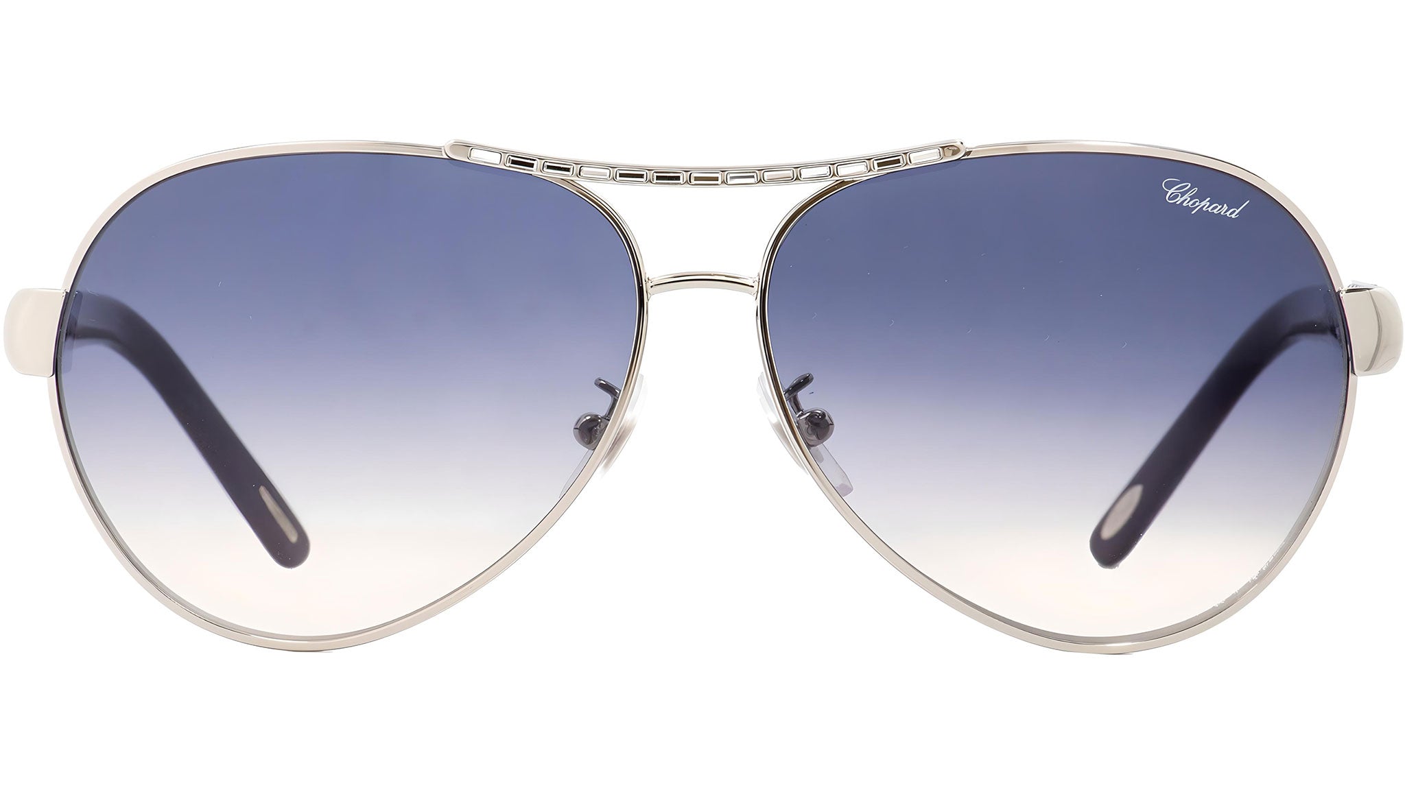 Occhiali da sole Chopard SCHA59S 0579 con montatura aviator da donna in metallo color palladio e lenti color blu sfumato. Rivenditore autorizzato Chopard online. Ogni prodotto Chopard viene consegnato con astuccio originale e accessori ed è coperto da garanzia del produttore di 12 mesi.