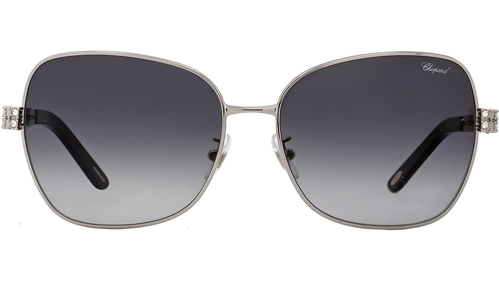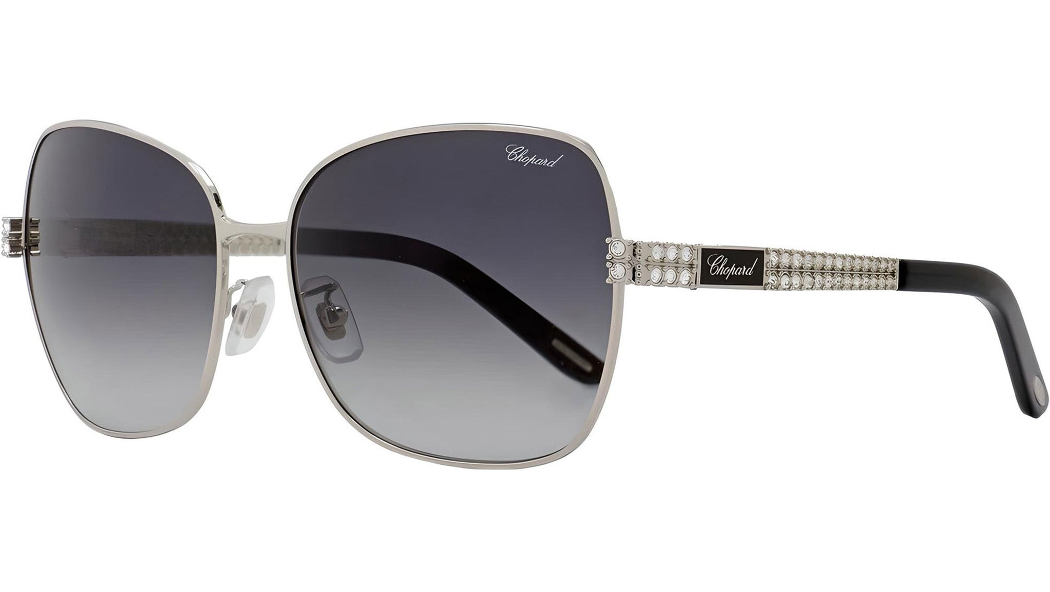 Occhiali da sole Chopard SCHB25S 0583 con montatura square da donna in metallo color argento e lenti color grigio sfumato. Rivenditore autorizzato Chopard online. Ogni prodotto Chopard viene consegnato con astuccio originale e accessori ed è coperto da garanzia del produttore di 12 mesi.