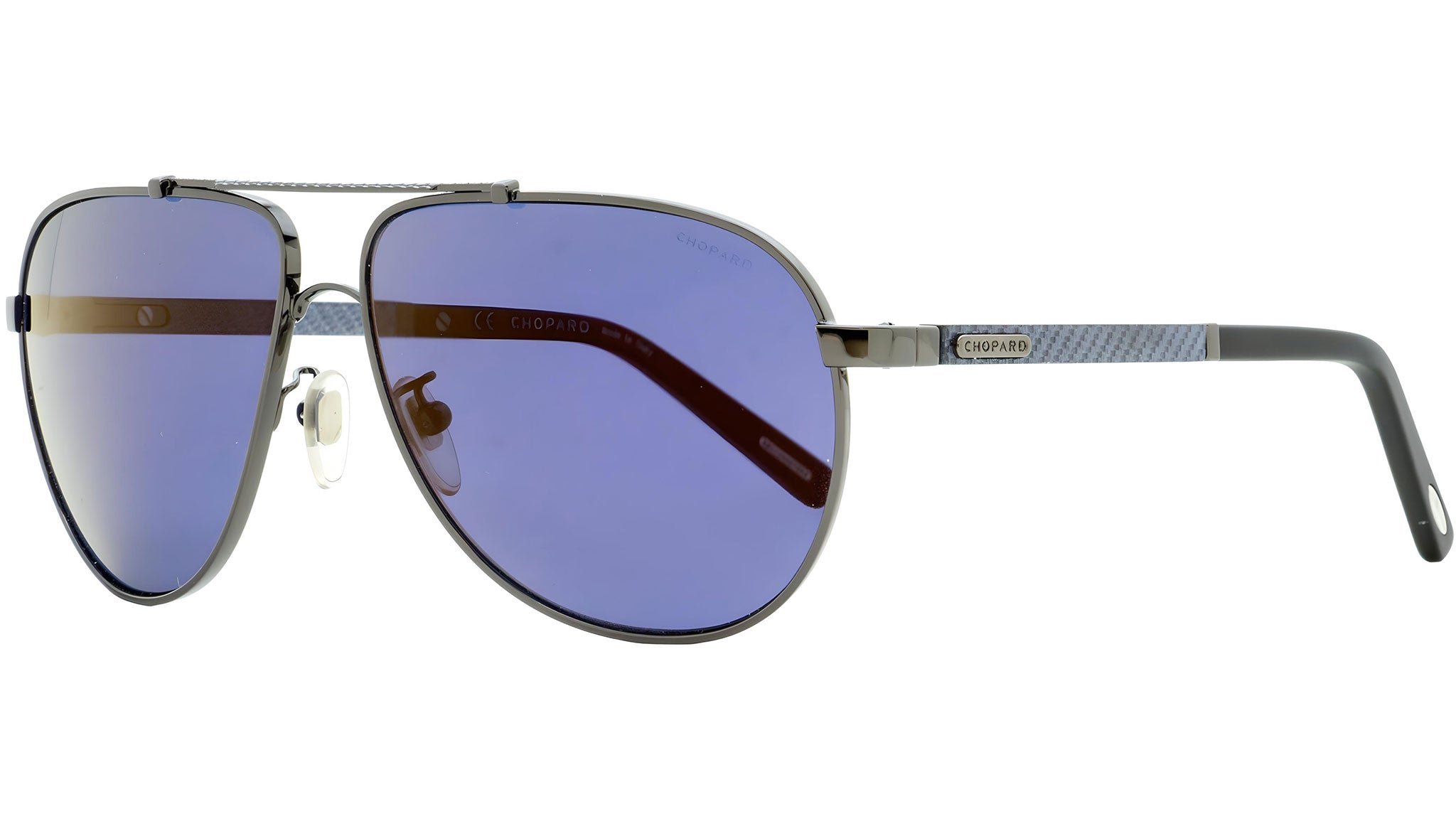 Occhiali da sole Chopard SCHB78 568B con montatura aviator da donna in fibra di carbonio color canna di fucile e lenti color blu con flash oro. Rivenditore autorizzato Chopard online. Ogni prodotto Chopard viene consegnato con astuccio originale e accessori ed è coperto da garanzia del produttore di 12 mesi.