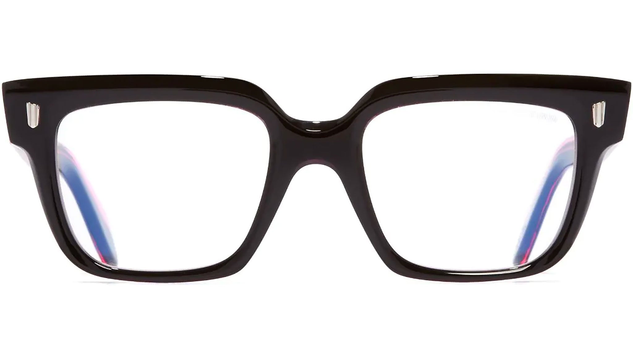 Cutler and Gross 9347 Square eyeglasses stand out as an expression of individuality, featuring a high, pronounced brow line. The shape is oversized square, with soft rounded corners and a delicate bevel. The design features elegant polished Oyster pins on the wingtips, adding an extra touch of class. Reinforced with Hazard core wire, the temples are both durable and elegantly structured. Expertly handcrafted in Italy, they embody the pinnacle of craftsmanship. Vertical Oyster front pins, sturdy 5-bar hinges, distinctive Compass Star temple pins and a gold leaf logo on the inside of the temple, add understated luxury. Fender temple tips complete the design, ensuring comfort and style in equal measure.