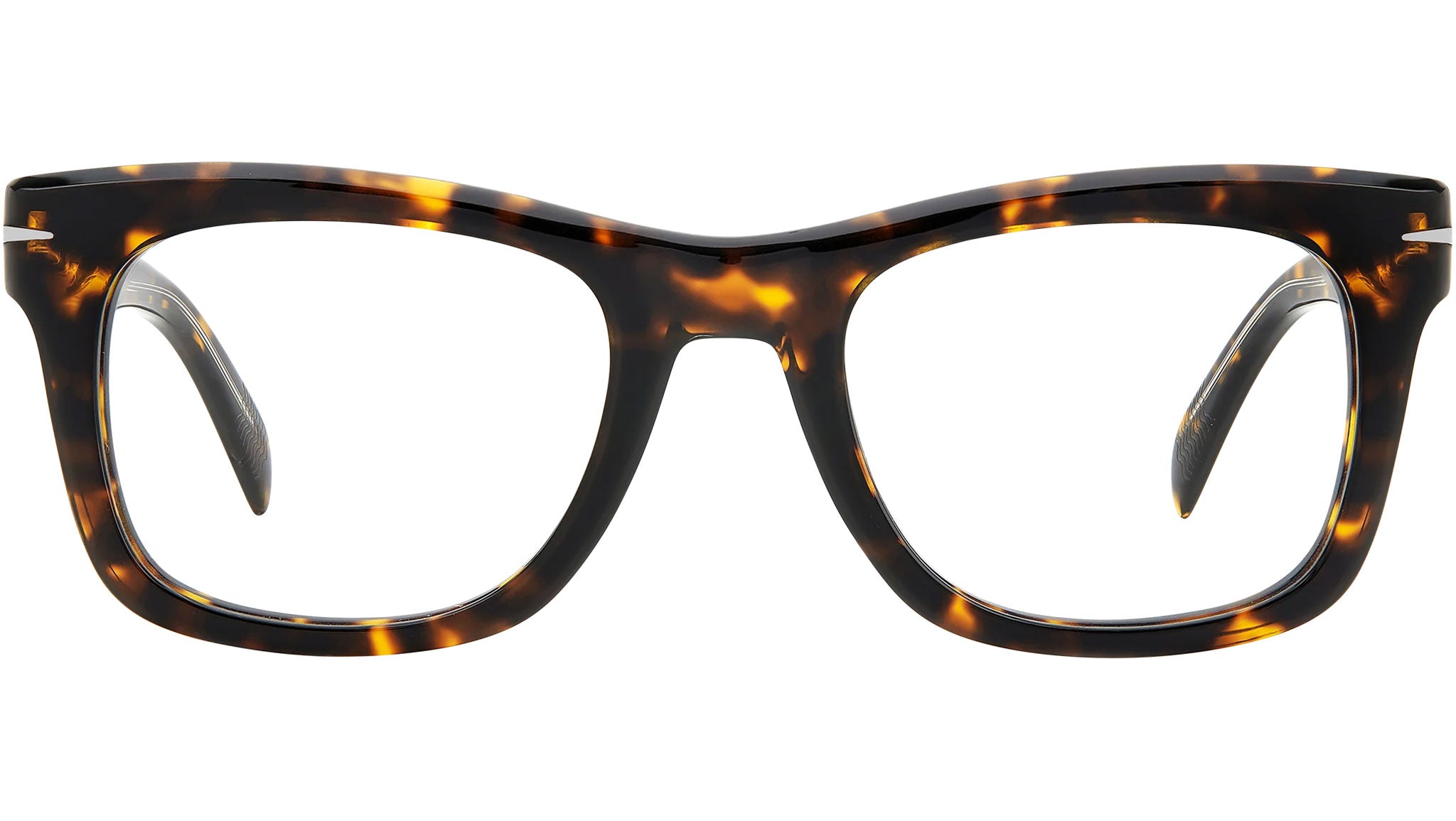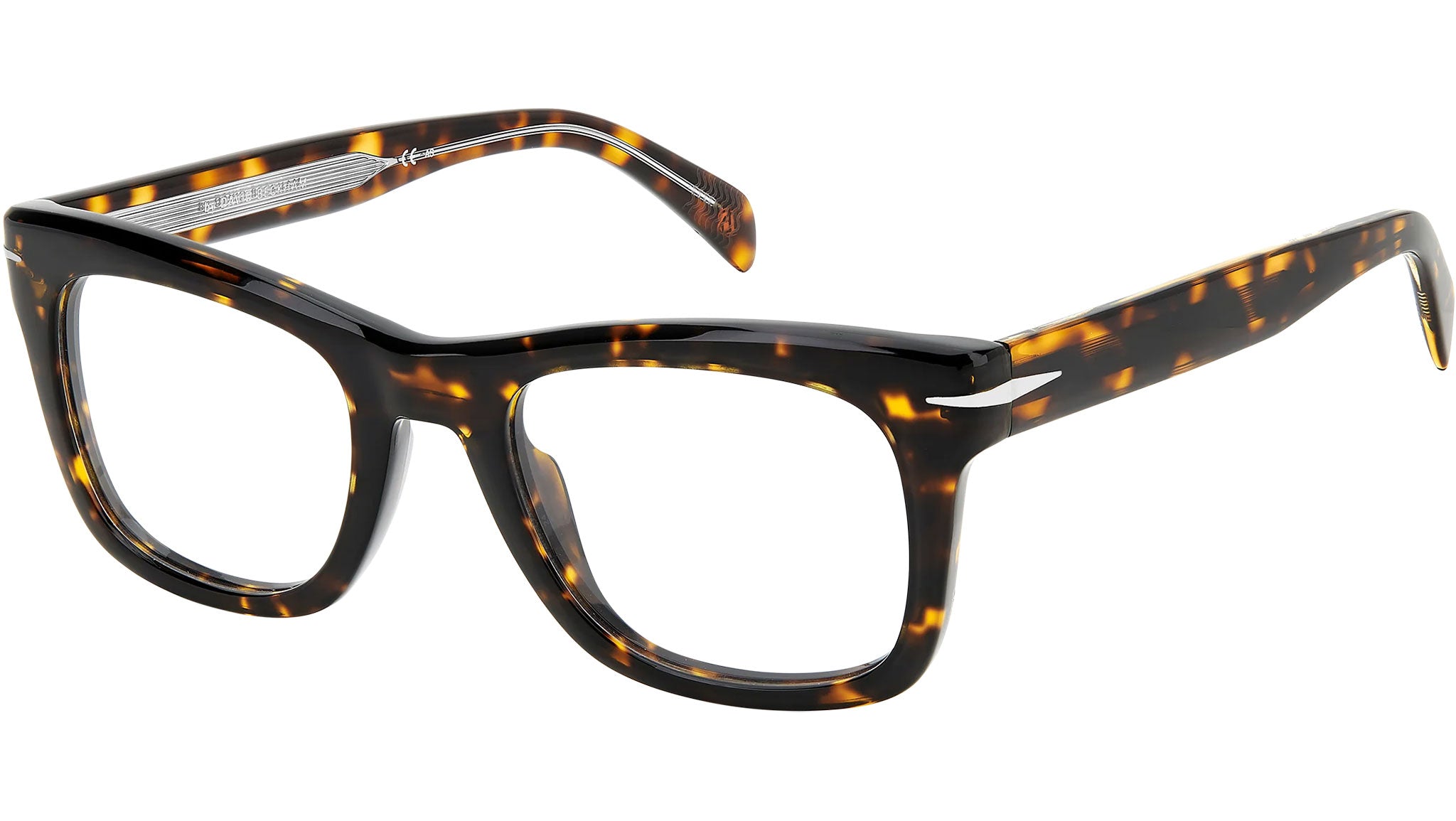 With an acetate frame and squared frame, these David Beckham glasses will never go out of style. The chiseled steel wire core is visible through the temples, a detail that is as "must have" as the stylised diamond and the branding on the inside. A DB monogram finishes the tips, shaped for comfort for those who travel with class.