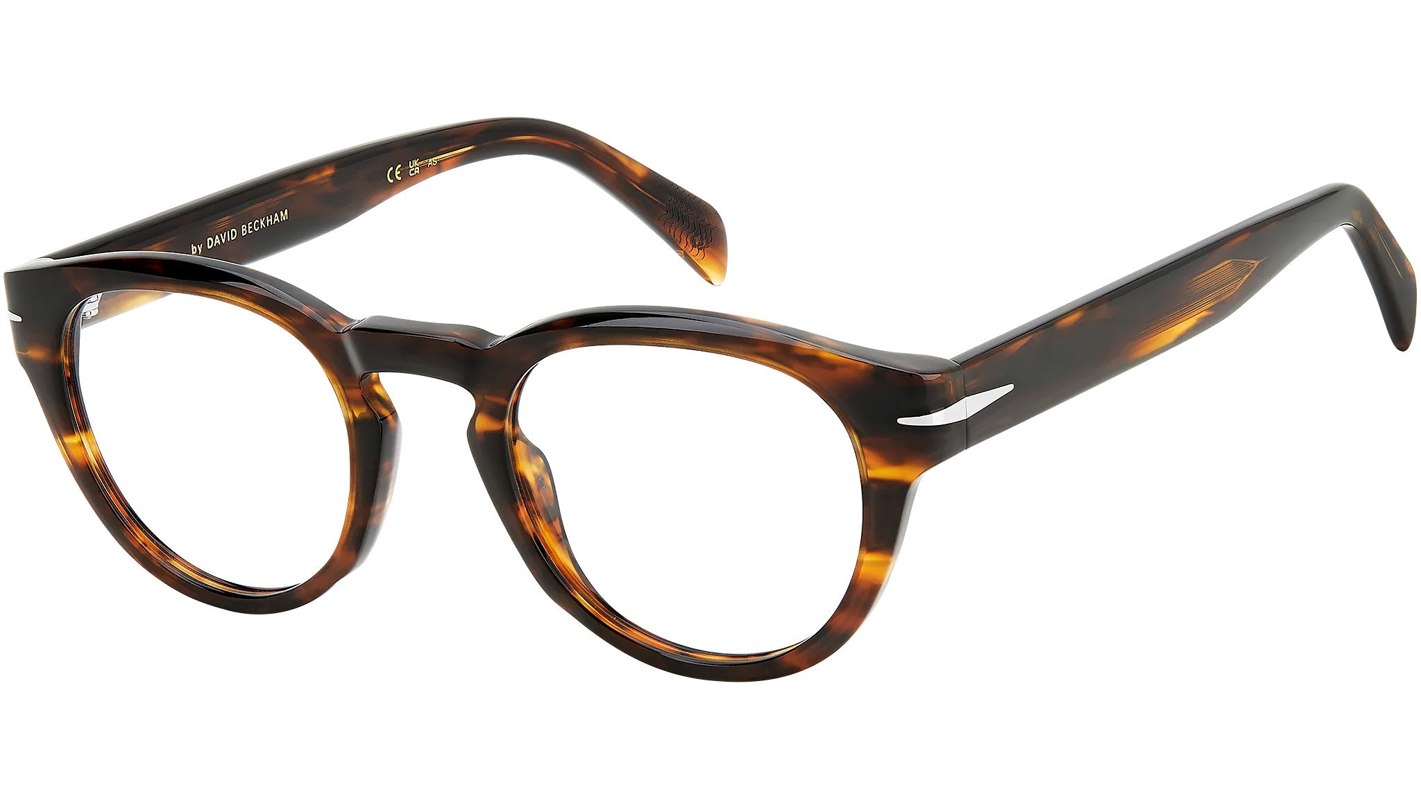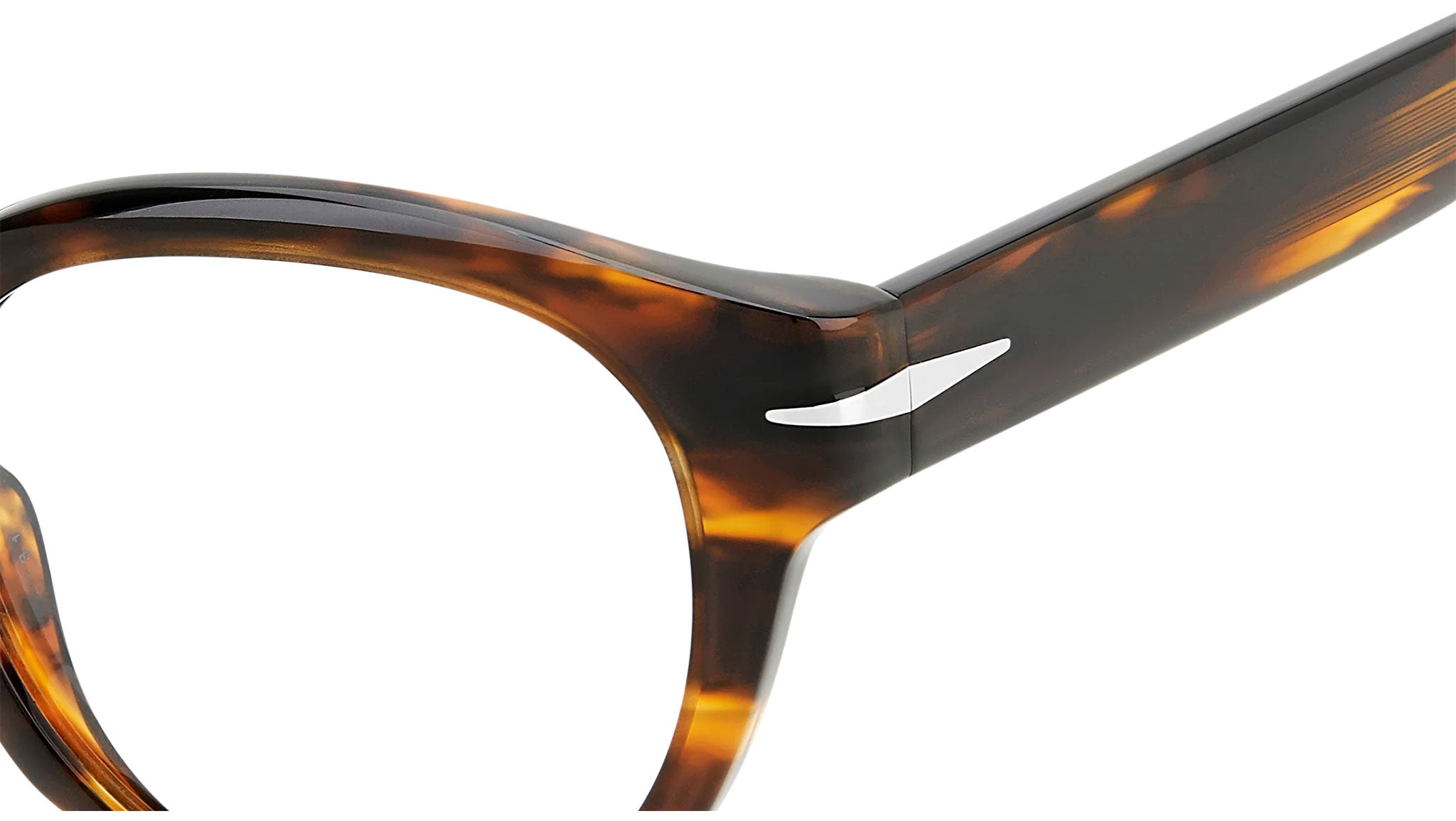These David Beckham opticals are elegant and timeless. The thick acetate frame is a key feature, carved on the inside for a lightweight feel. They sit on flexible hinges for added comfort. The temples are also available in a transparent version with a visible wire core, and all are finished with David Beckham symbols: the metal diamond detail, the branding on the inside and the monogram on the temple tips.