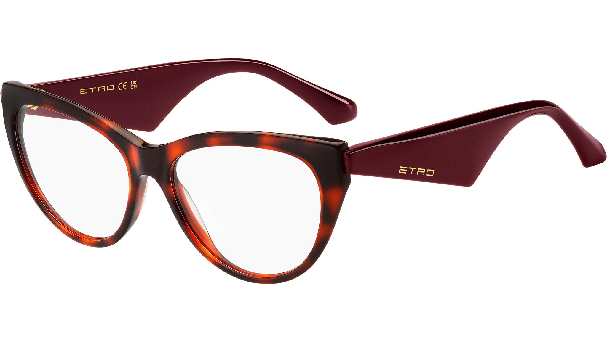 ETRO eyeglasses model 0008 color code 086 havana with demo lenses A synthesis of the Maison's modern and eclectic DNA, the "ETRO Tailoring" line combines an extremely light acetate frame with triangular temples with a retro appeal, creating a fascinating play of volumes and proportions. The temple tips have an iconic design that recalls the symmetry of the ETRO logo: a distinctive touch that identifies all the brand's glasses. Crafted from quality acetate in solid or shaded tones, these eyeglasses are completed with the ETRO logo on the temple. Authorized online dealer of ETRO Eyewear.