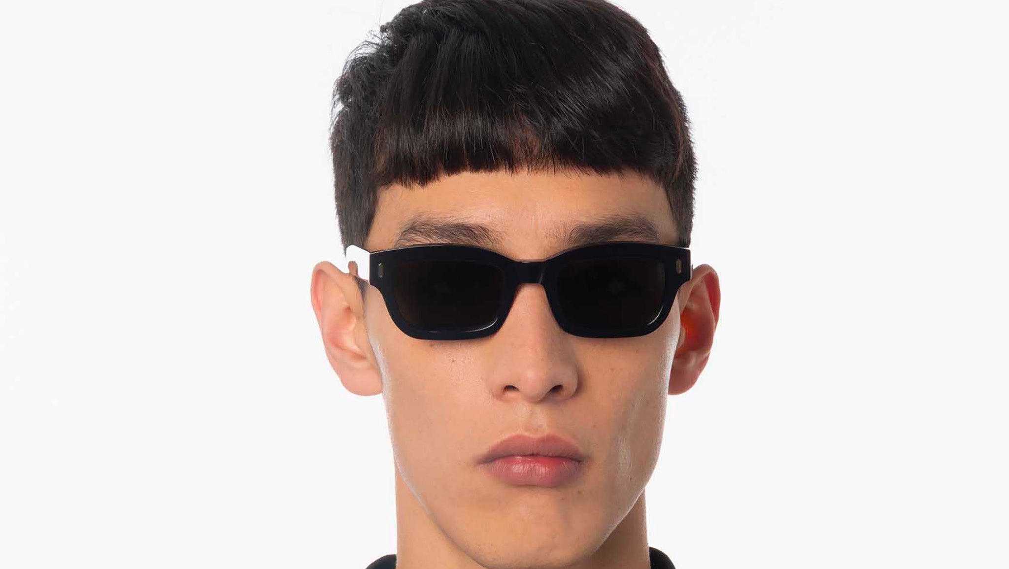 Occhiali da sole con montatura in acetato artigianale di colore nero e lenti grigio. Materiale del telaio: acetato. Forma del telaio: rettangolari. Cerniere metalliche a cinque barre e nucleo in filo personalizzato. Custodia rigida premium e panno per la pulizia in microfibra.