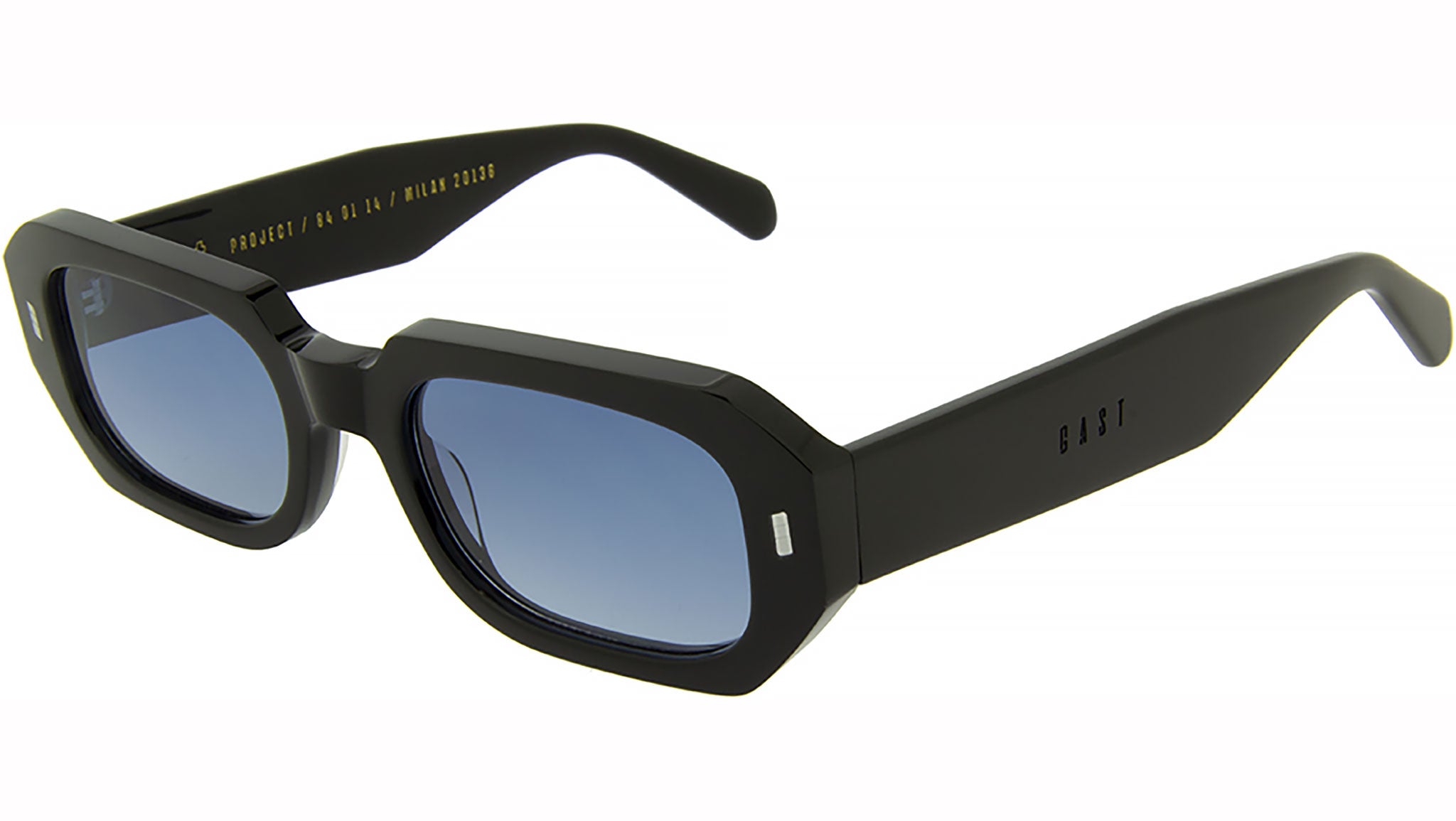 Occhiali da sole con montatura in acetato artigianale di colore nero e lenti blu sfumato. Materiale del telaio: acetato. Forma del telaio: rettangolari. Cerniere metalliche a cinque barre e nucleo in filo personalizzato. Custodia rigida premium e panno per la pulizia in microfibra.