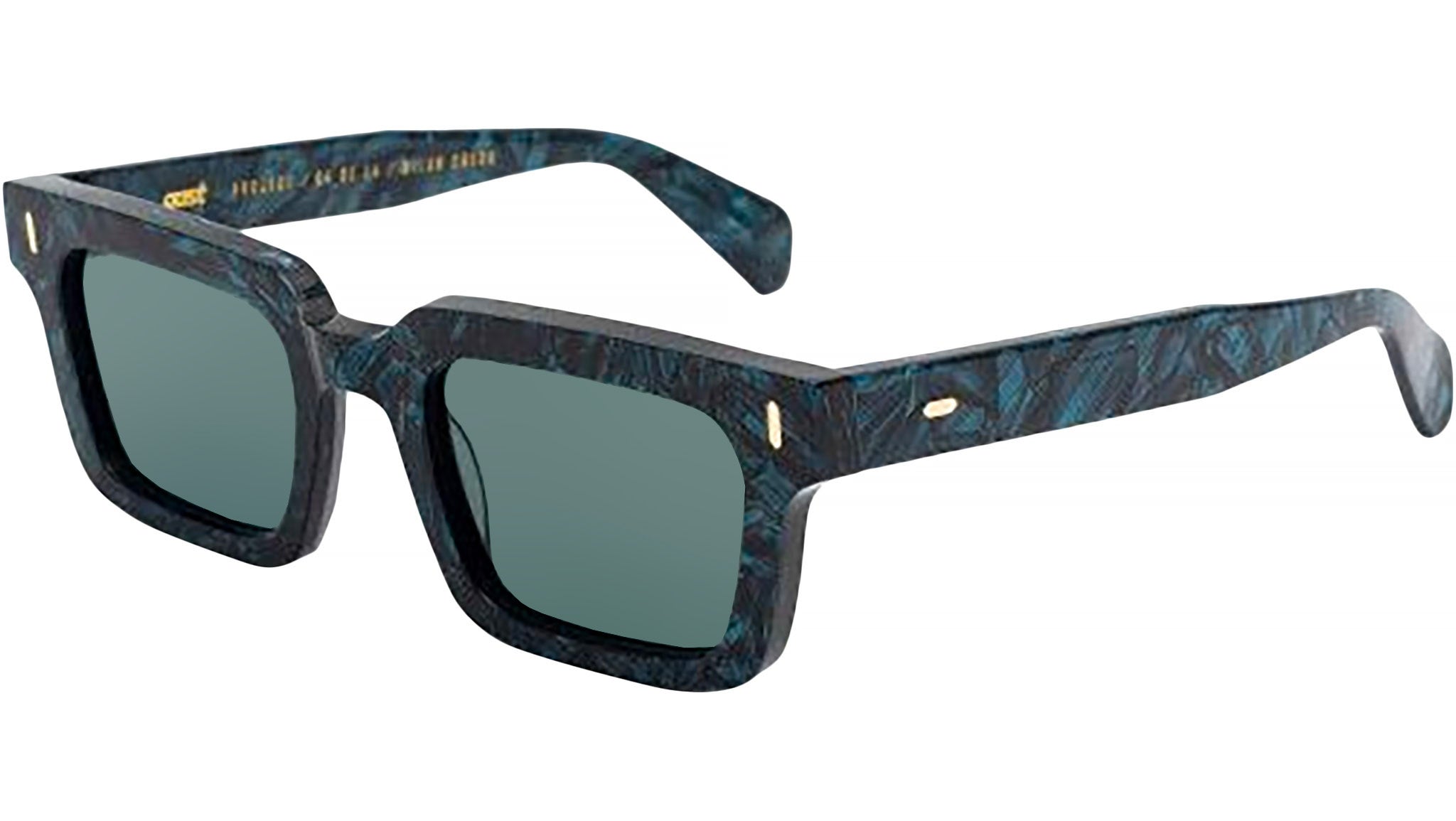 Gast (NOT) COMMON Blue. Handmade sunglasses with blue acetate frame and gold wire core. Green nylon lenses – 100% UVA / UVB protection with anti-reflective inside coating. Five barrels metal hinges and premium silver logo box with hard case and microfiber cleaning cloth.