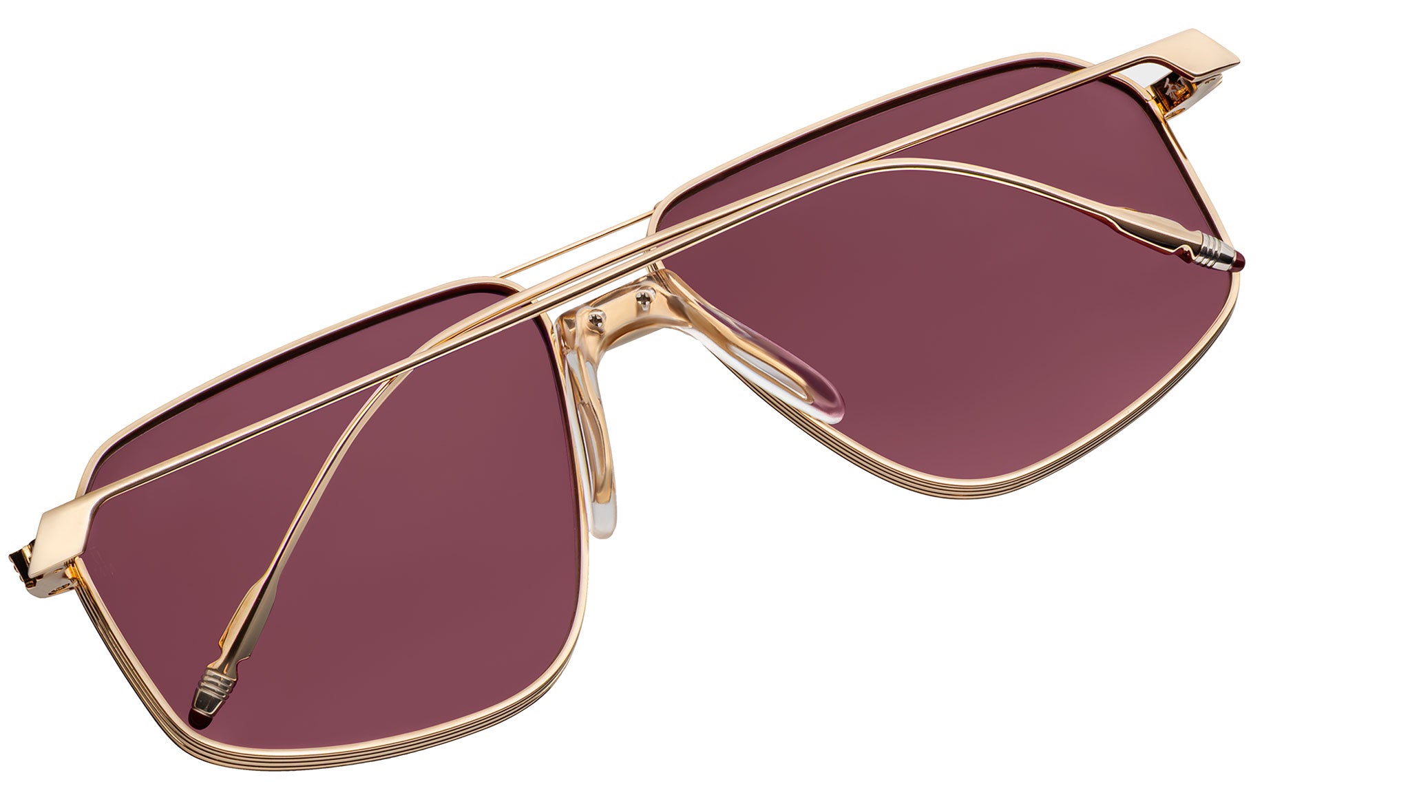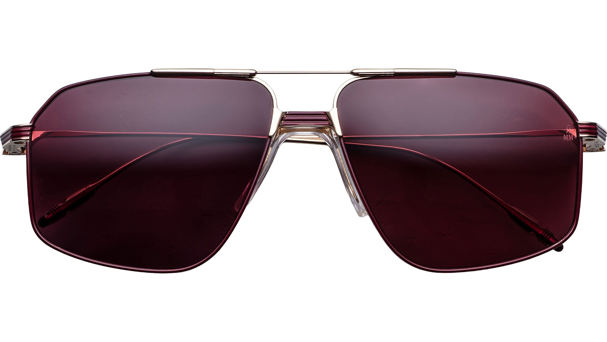 Crafted from 100% beta titanium, the light gold frame of these sunglasses is enhanced with refined gold accents, offering a lightweight yet resilient structure. The design features custom monoblock hinge construction for seamless durability and silver and burgundy epoxy tailfin temple tips that provide a distinctive touch. Fitted with mahogany gradient CR-39 lenses, these sunglasses deliver superior visual clarity and comfort, further enhanced by a backside anti-reflective treatment and a 4-base curve for a balanced, elegant profile.