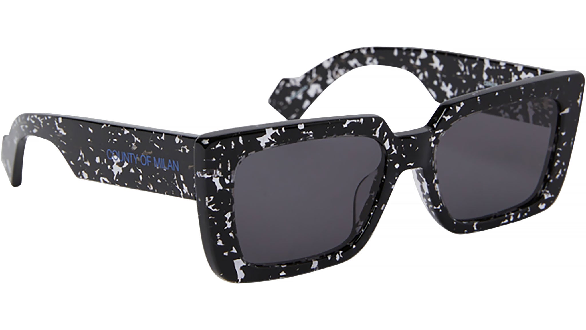 Tecka by Marcelo Burlon County of Milan, a bold oversized rectangular frame with slightly upturned sides and a geometric step on the bridge. Recalling one of the most beloved shapes, the Tecka sunglasses are a timeless model. The temples feature the new "Marcelo Burlon County of Milan" logo embossed on both sides.