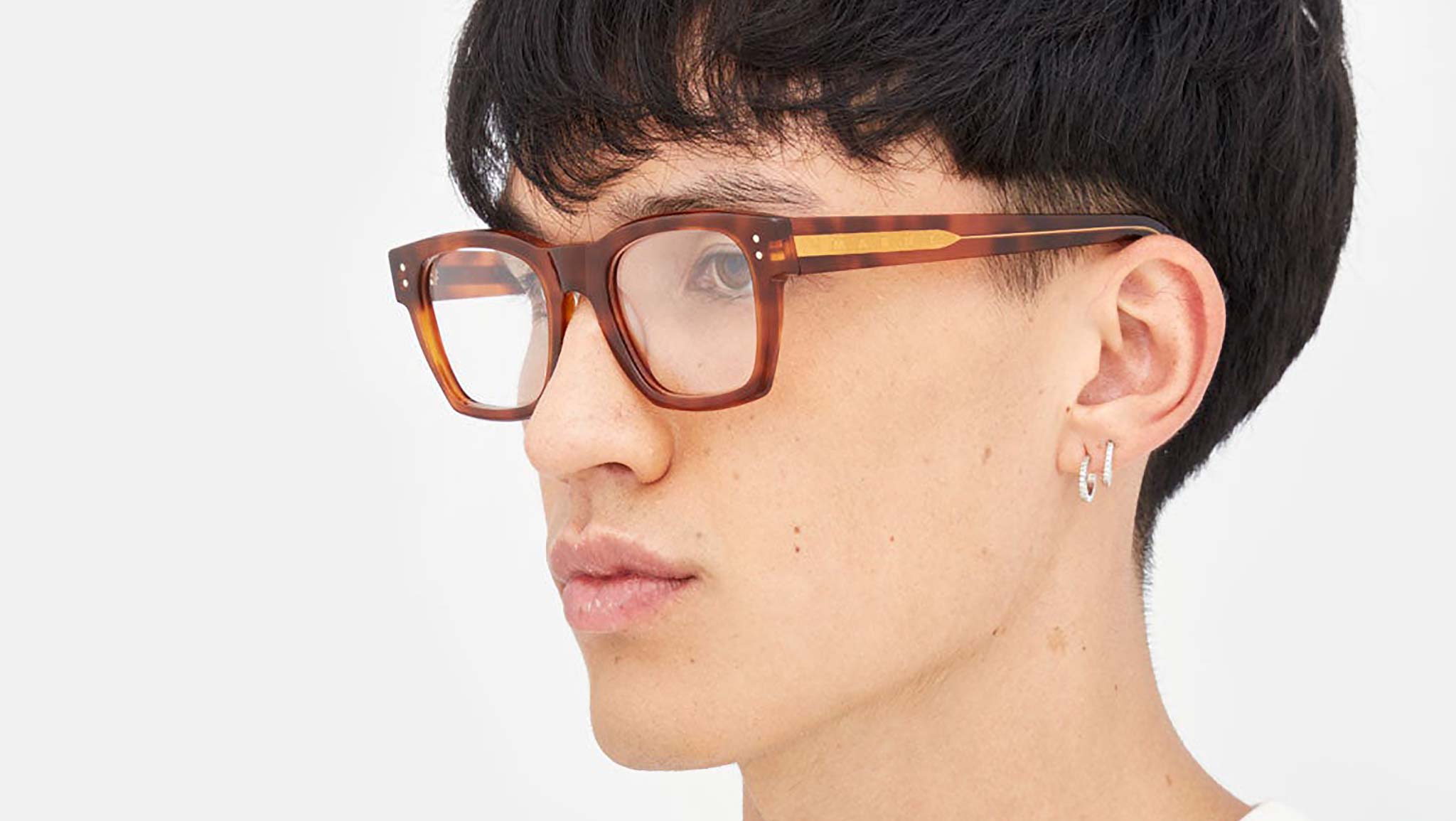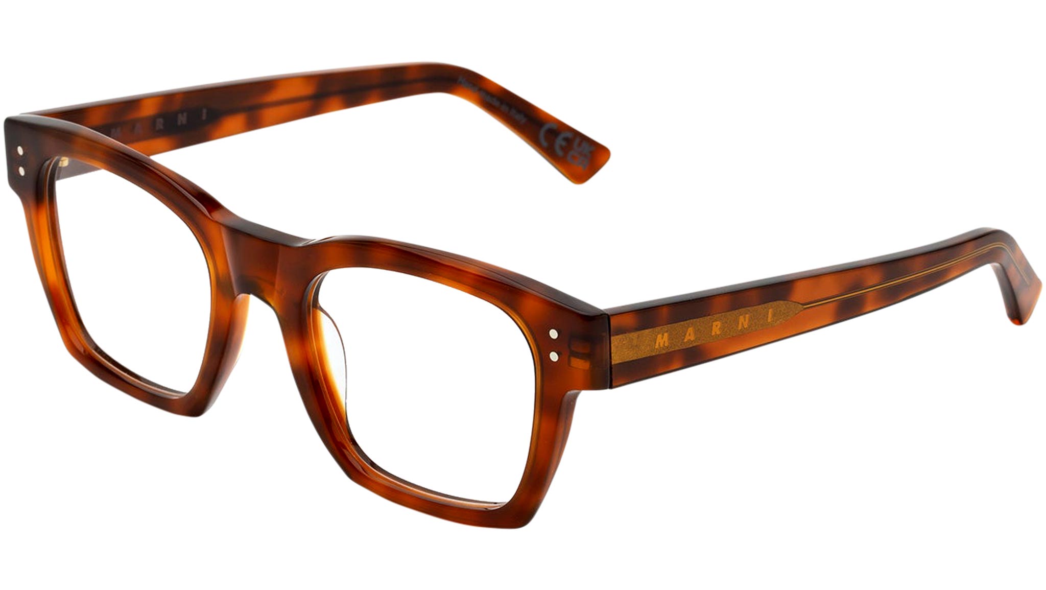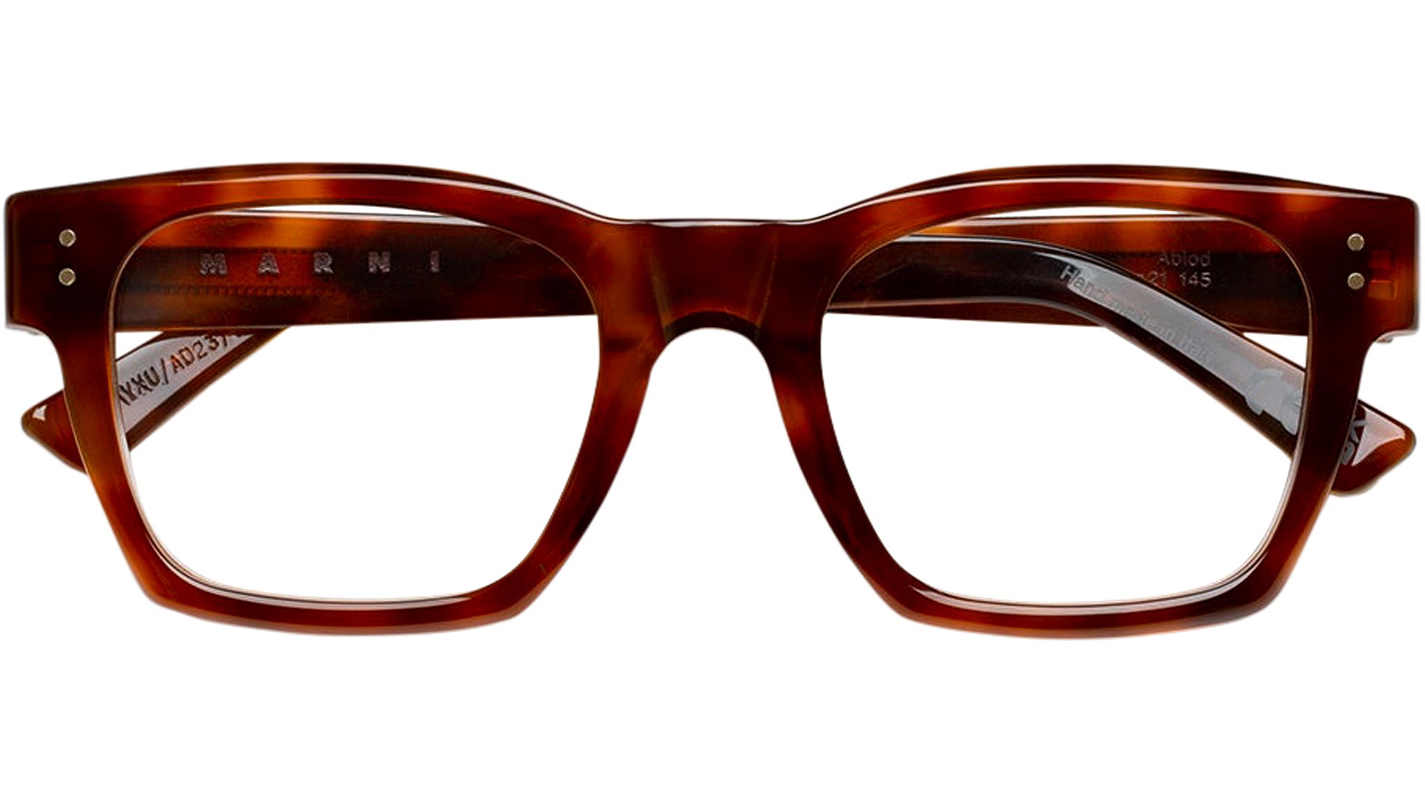 Designed exclusively for Marni, Abiod is a fresh interpretation of classic square glasses. It features thick rims and thick acetate tips with a carefully curved upper line of the frame and metal detailing. Abiod captures the intellectual, quirky aesthetics of Marni for a functional, everyday piece of eyewear. This model comes in a light Havana acetate. Sizes: R Lens Width: 52 mm. Frame Front: Frame Side: 145 mm. Product Code Size R: YXU