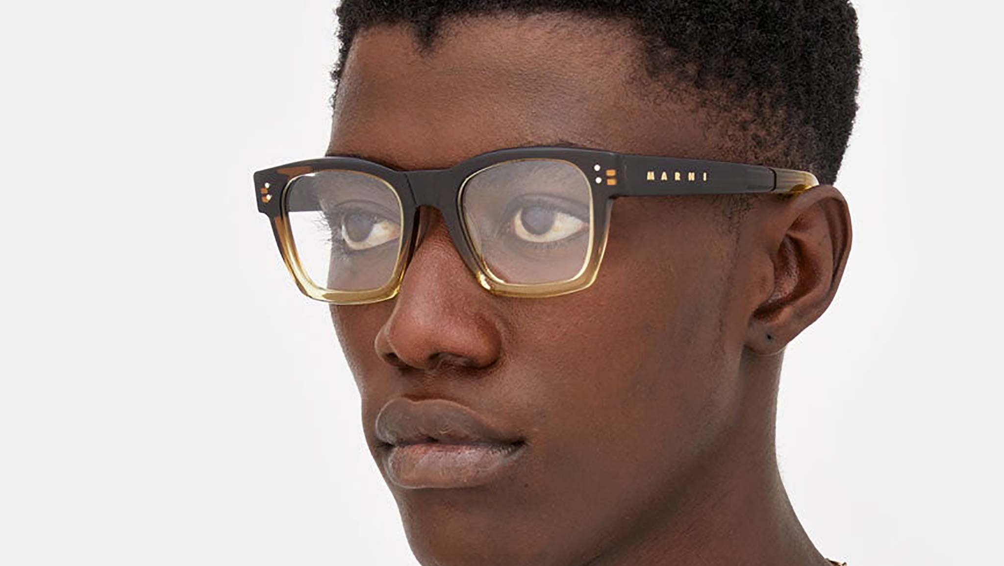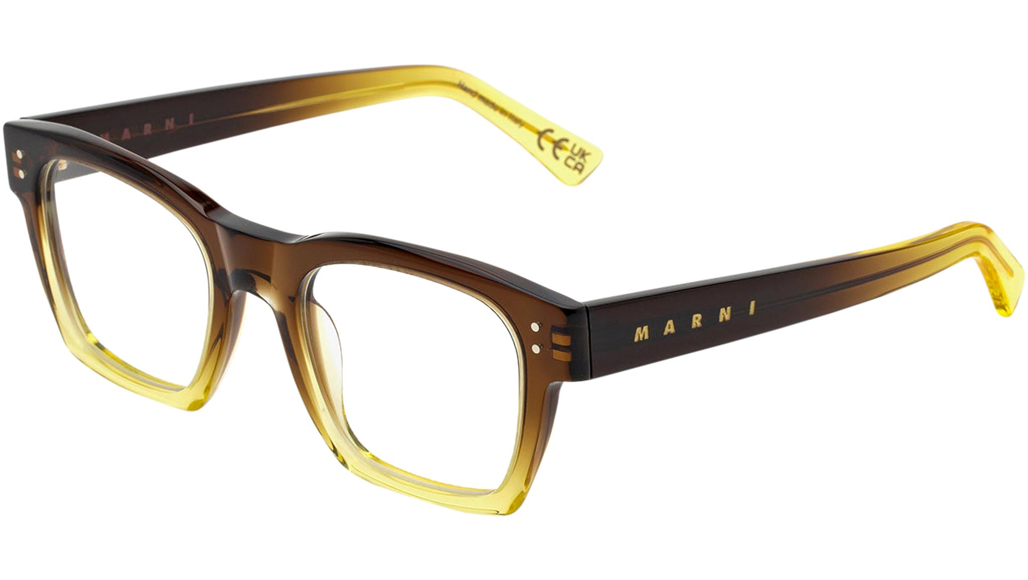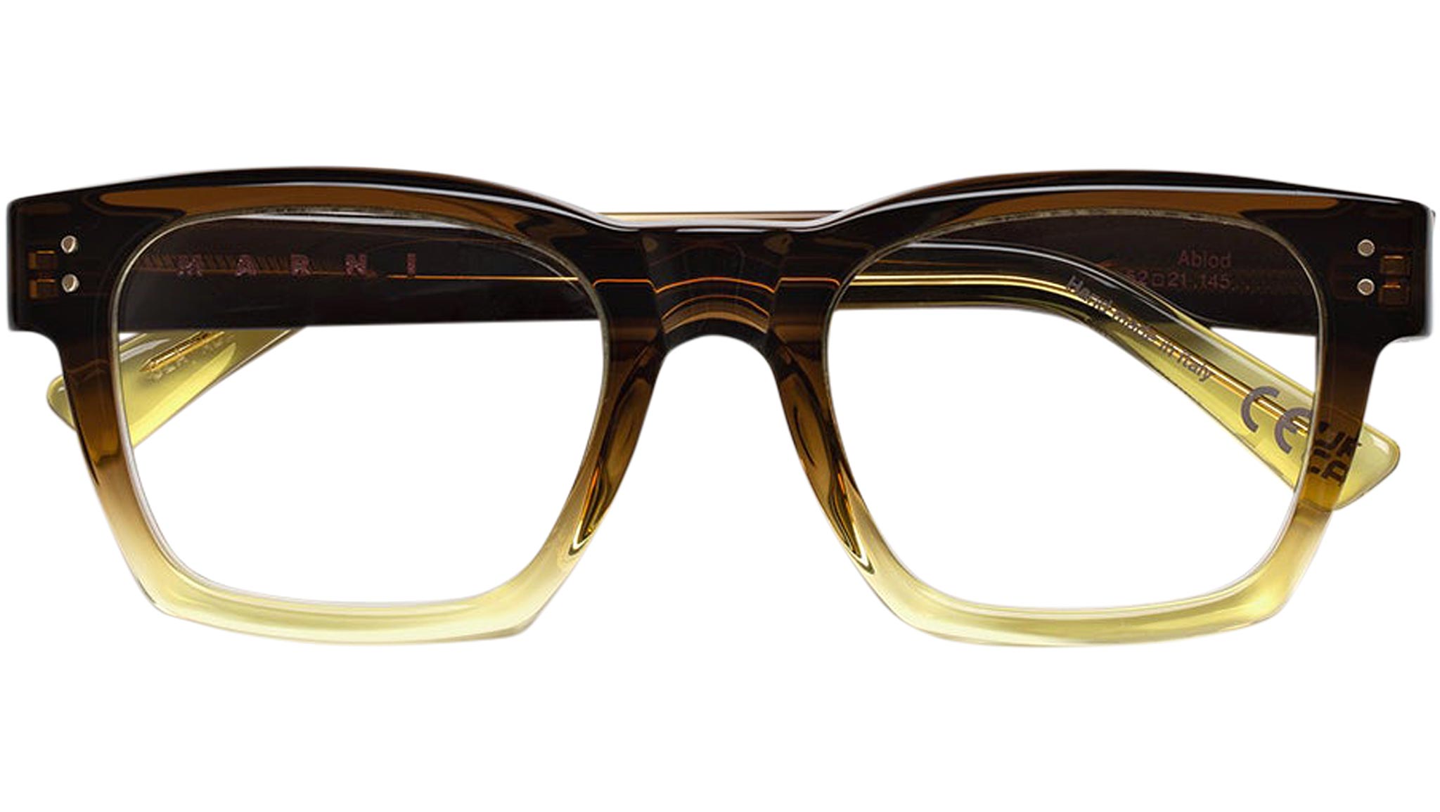 Designed exclusively for Marni, Abiod is a fresh interpretation of classic square glasses. It features thick rims and thick acetate tips with a carefully curved upper line of the frame and metal detailing. Abiod captures the intellectual, quirky aesthetics of Marni for a functional, everyday piece of eyewear. This model comes in a faded yellow and brown acetate. Sizes: R Lens Width: 52 mm. Frame Front: Frame Side: 145 mm. Product Code Size R: GLA
