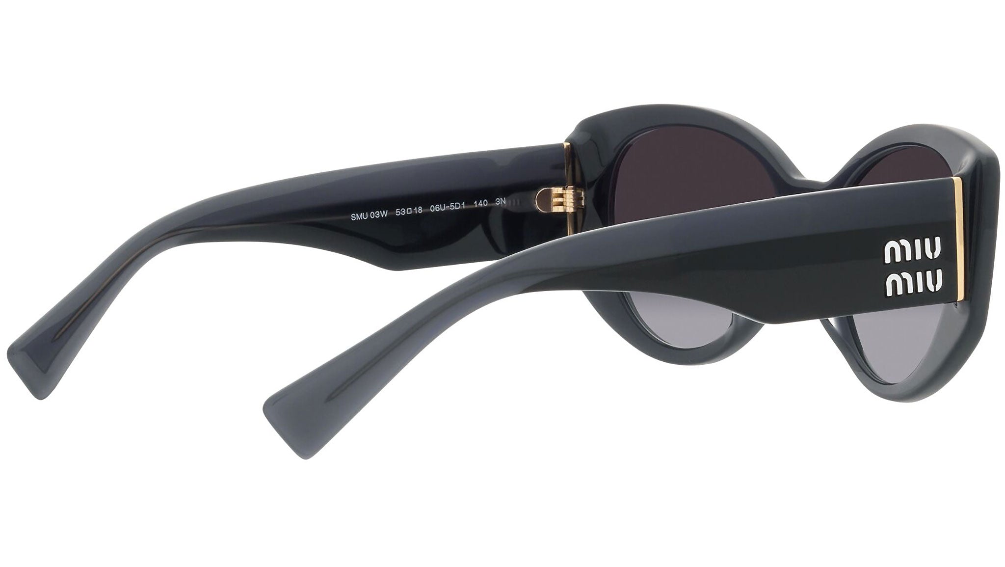 Miu Miu sunglasses model MU 03WS color variant 06U5D1 opaline gray, with gradient gray lenses. Miu Miu offers unique creations, in which constant stylistic research combines perfectly with the artisan mastery of the workmanship. The feminine and sinuous silhouettes of the frames are an expression of a wealth of details that fully reflect the stylistic codes and the undisputed talent of the brand in combining unconventional design with a romanticism with retro references.