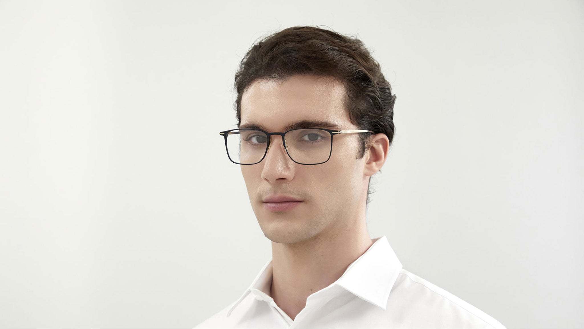 Montblanc Established eyeglasses line model MB0193O 002, semi-matte aluminum magnesium color variant with gold-colored temples. Throughout its history, Montblanc has revolutionized the culture of writing with extraordinary innovations. Today, the Maison continues to push boundaries, advancing the expression of refined craftsmanship, in each of its product categories: at the top in luxury writing instruments, watches, leather goods, fragrances and eyewear.