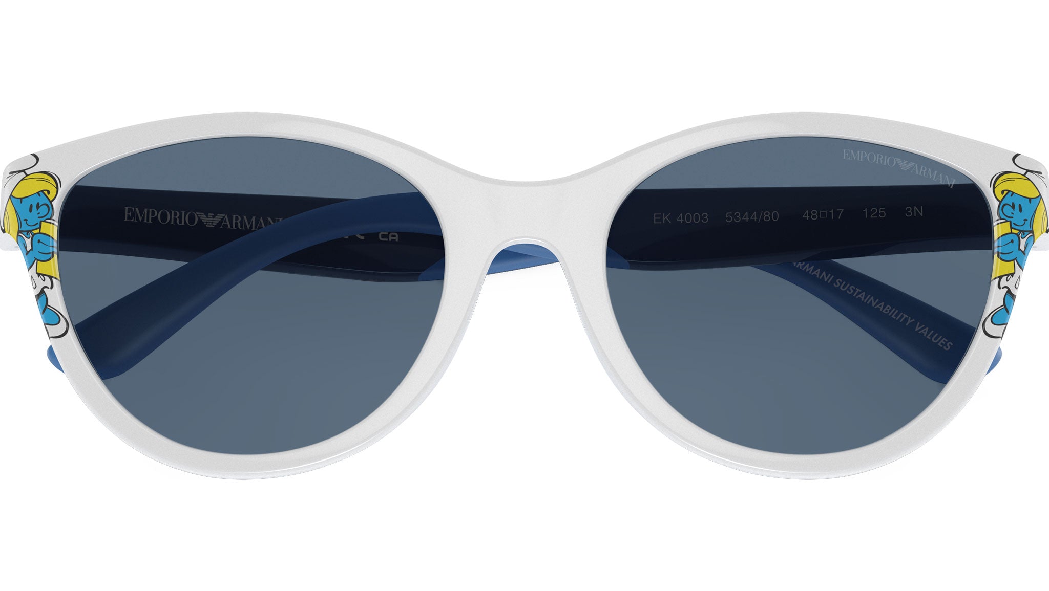 Occhiali da sole Emporio Armani Kids EK4003 534480 con montatura cat eye in iniettato bianco lucido e lenti in bio poliammide color blu scuro. Vestibilità a ponte alto. Linea: Essential Leisure. Codice modello: 0EK4003. Codice colore: 534480. Rivenditore autorizzato Emporio Armani Kids online. Gli occhiali vengono consegnati con custodia e accessori originali e sono coperti dalla garanzia ufficiale di 12 mesi del produttore.