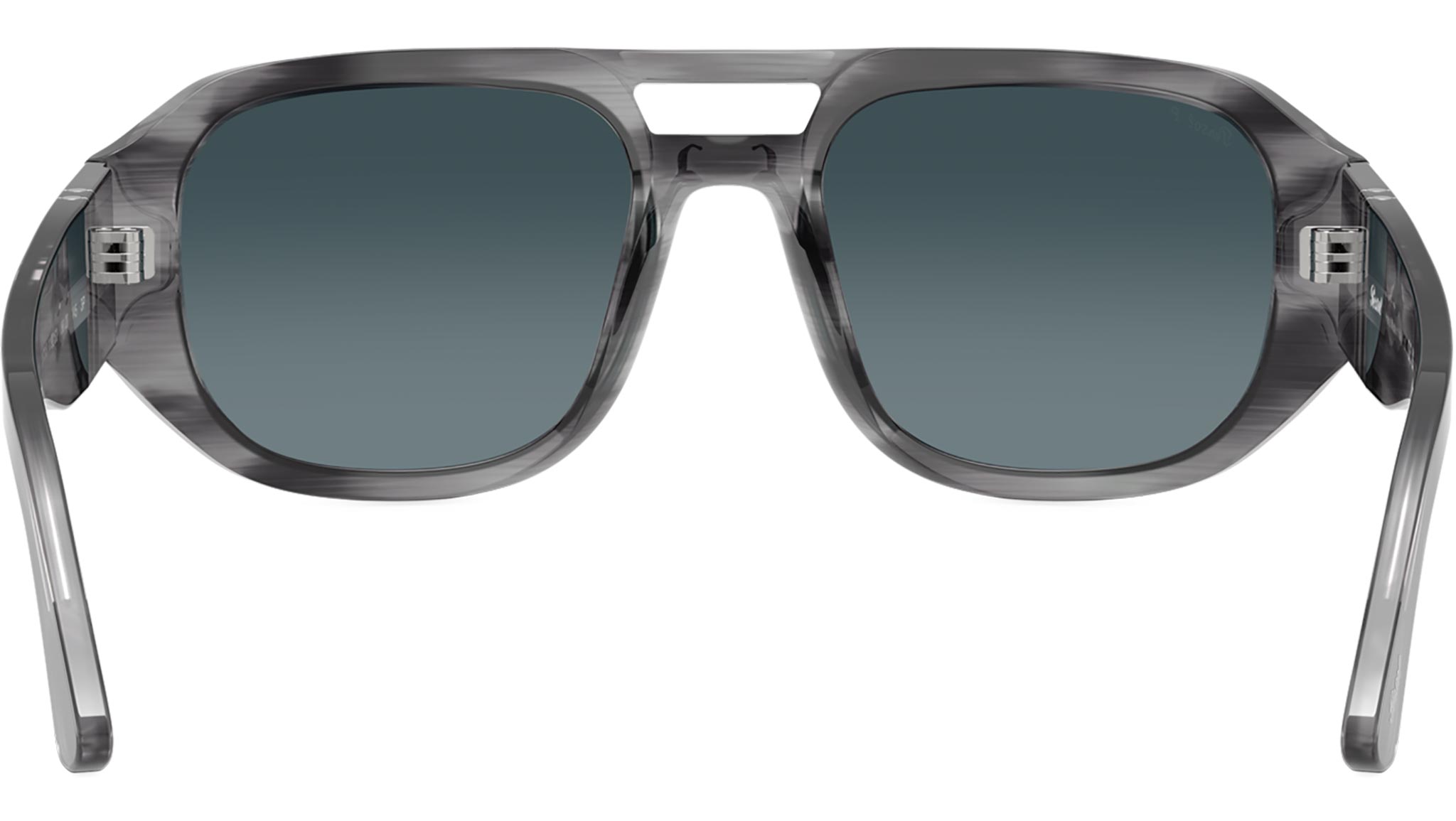 Occhiali da sole Persol unisex modello PO3373S 1192S3 con montatura navigator in acetato grigio striato e lenti in cristallo blu chiaro sfumato blu scuro base 6. Vestibilità a ponte alto. Linea: Sartoria. Codice Brand: 0PO3373S. Codice colore: 1192S3. Rivenditore autorizzato online Persol Eyewear. Ogni prodotto Persol viene consegnato con astuccio originale e accessori ed è coperto da garanzia del produttore di 12 mesi.