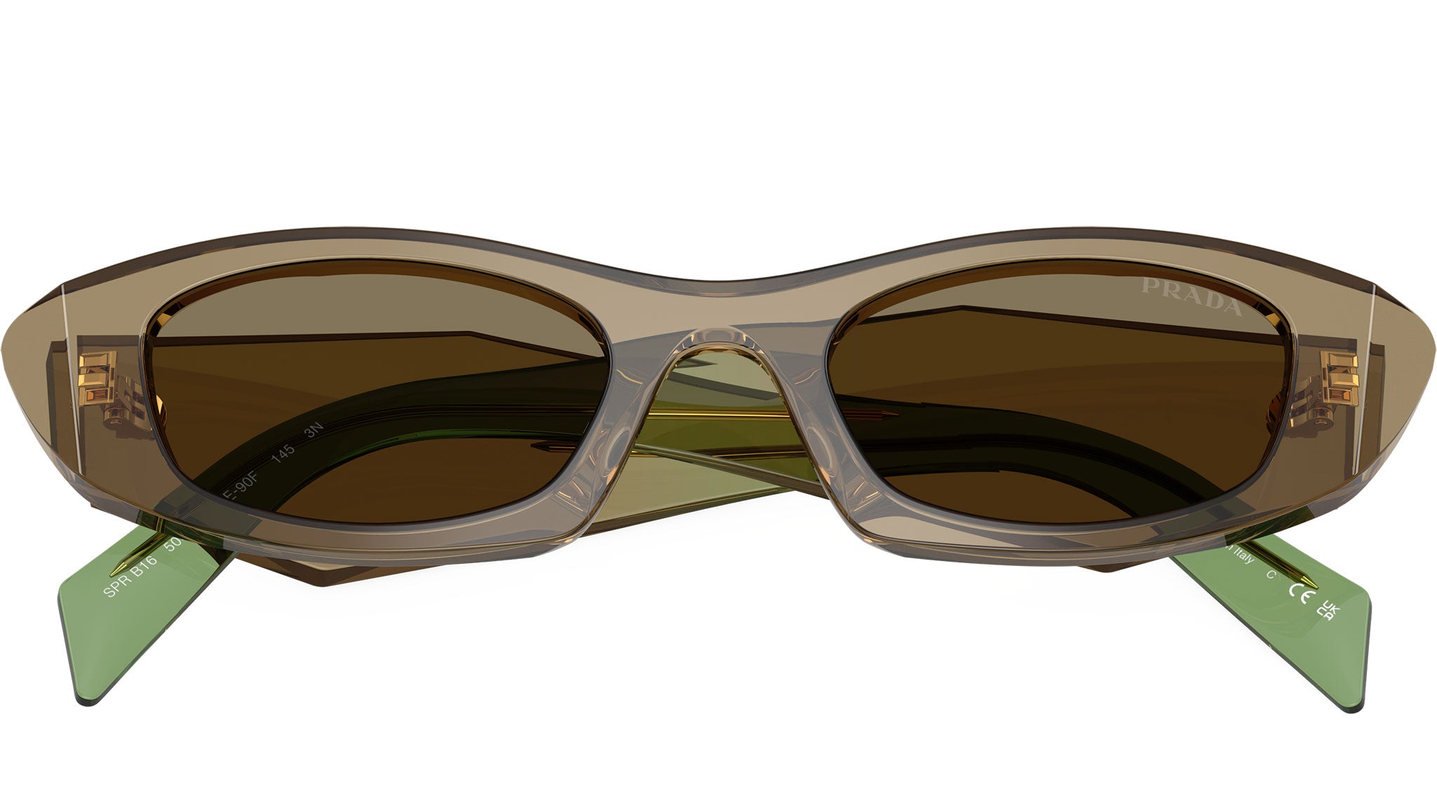 Occhiali da sole Prada PR B16S 29E90F donna con montatura ovale in acetato terra e lenti in bio poliammide color marrone chiaro. Vestibilità a ponte alto. Linea: Design. Codice modello: PRB16S. Codice colore: 29E90F. Made in Italy. Rivenditore autorizzato Prada online. Gli occhiali vengono consegnati con custodia e accessori originali e sono coperti dalla garanzia ufficiale di 12 mesi del produttore.