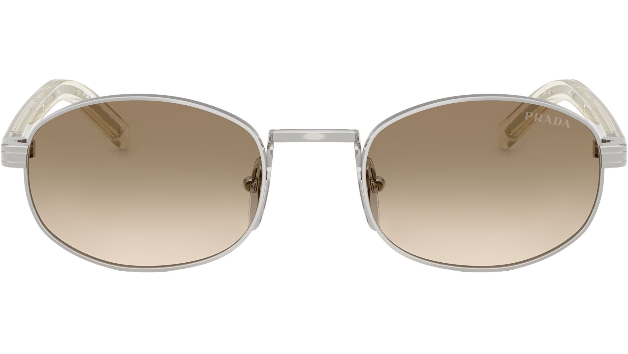Occhiali da sole Prada PR B53S 1BC80K donna con montatura ovale in acciaio argento e lenti in poliammide color giallo chiaro sfumato marrone. Naselli regolabili. Linea: Signature. Codice modello: PRB53S. Codice colore: 1BC80K. Made in Italy. Rivenditore autorizzato Prada online. Gli occhiali vengono consegnati con custodia e accessori originali e sono coperti dalla garanzia ufficiale di 12 mesi del produttore.
