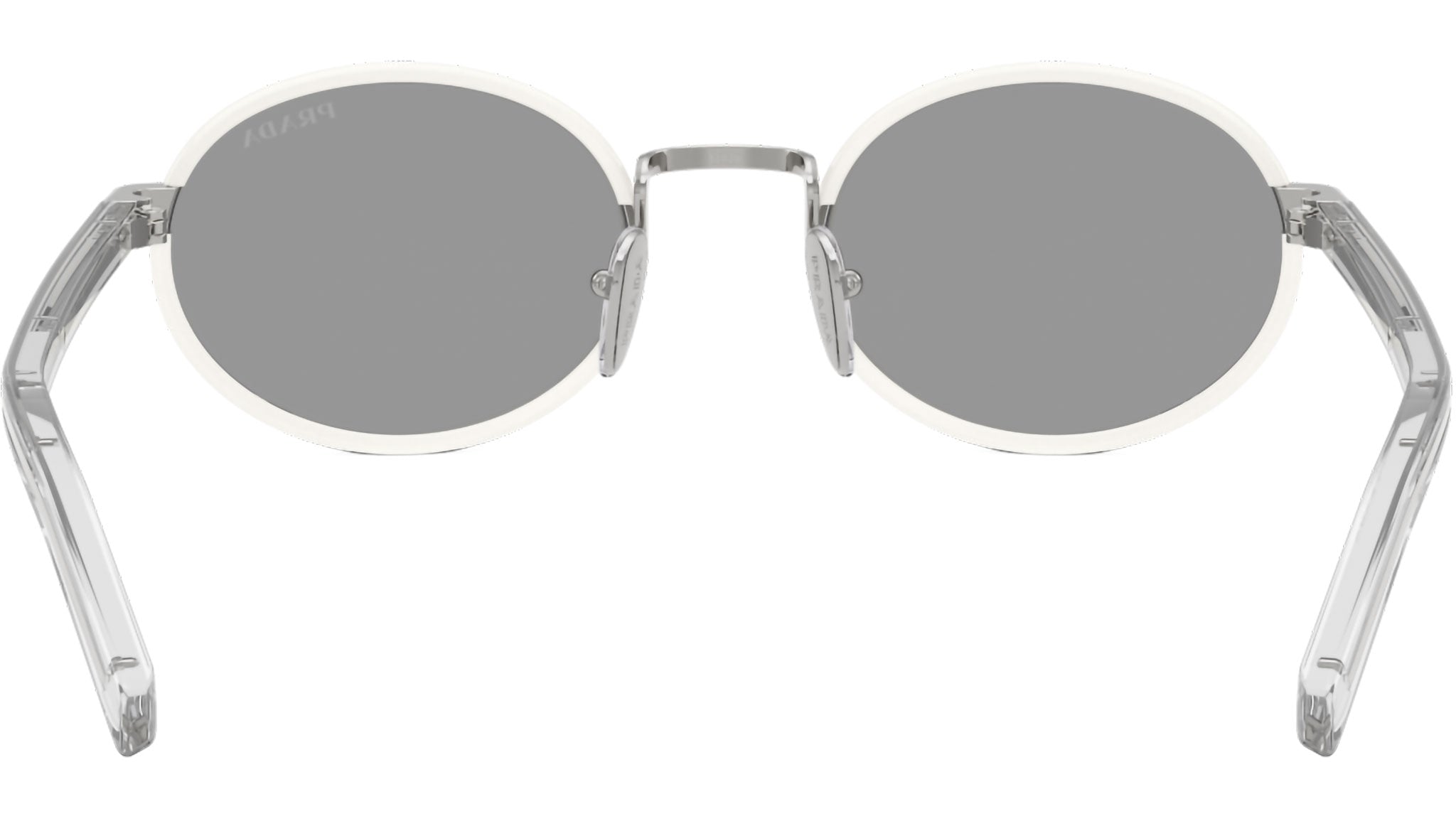 Occhiali da sole Prada PR B56S 23E50Q donna con montatura ovale in acciaio talco e lenti in bio poliammide color grigio. Naselli regolabili. Linea: Signature. Codice modello: PRB56S. Codice colore: 23E50Q. Made in Italy. Rivenditore autorizzato Prada online. Gli occhiali vengono consegnati con custodia e accessori originali e sono coperti dalla garanzia ufficiale di 12 mesi del produttore.