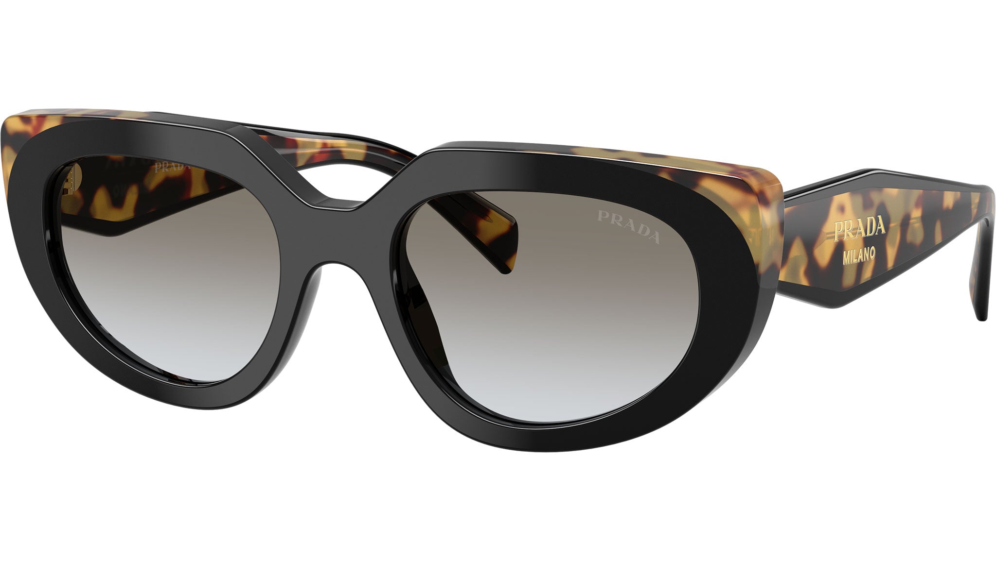 Occhiali da sole Prada PR D02S 0CD80L donna con montatura ovale in acetato nero / tartaruga e lenti in bio poliammide color grigio sfumato. Vestibilità a ponte alto. Linea: Design. Codice modello: PRD02S. Codice colore: 0CD80L. Made in Italy. Rivenditore autorizzato Prada online. Gli occhiali vengono consegnati con custodia e accessori originali e sono coperti dalla garanzia ufficiale di 12 mesi del produttore.