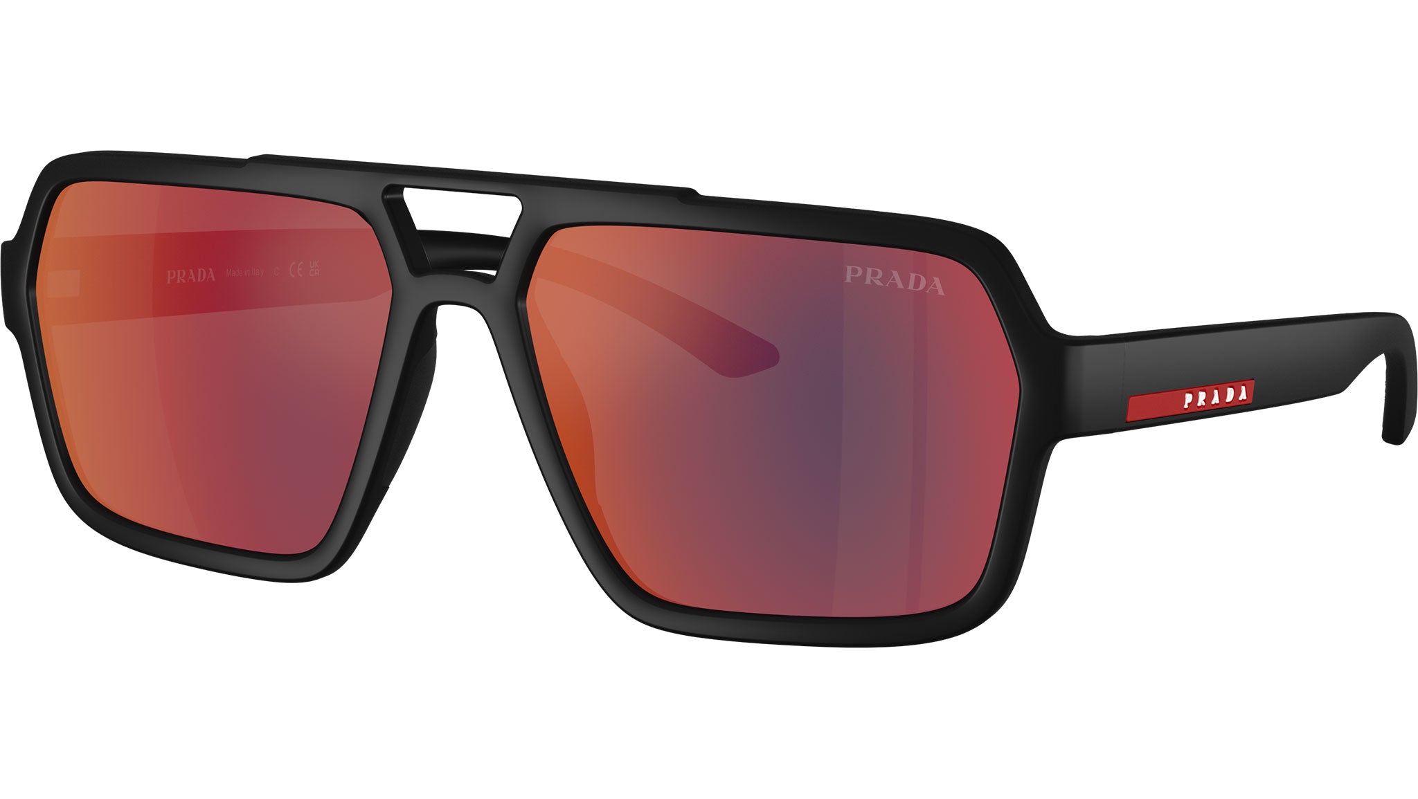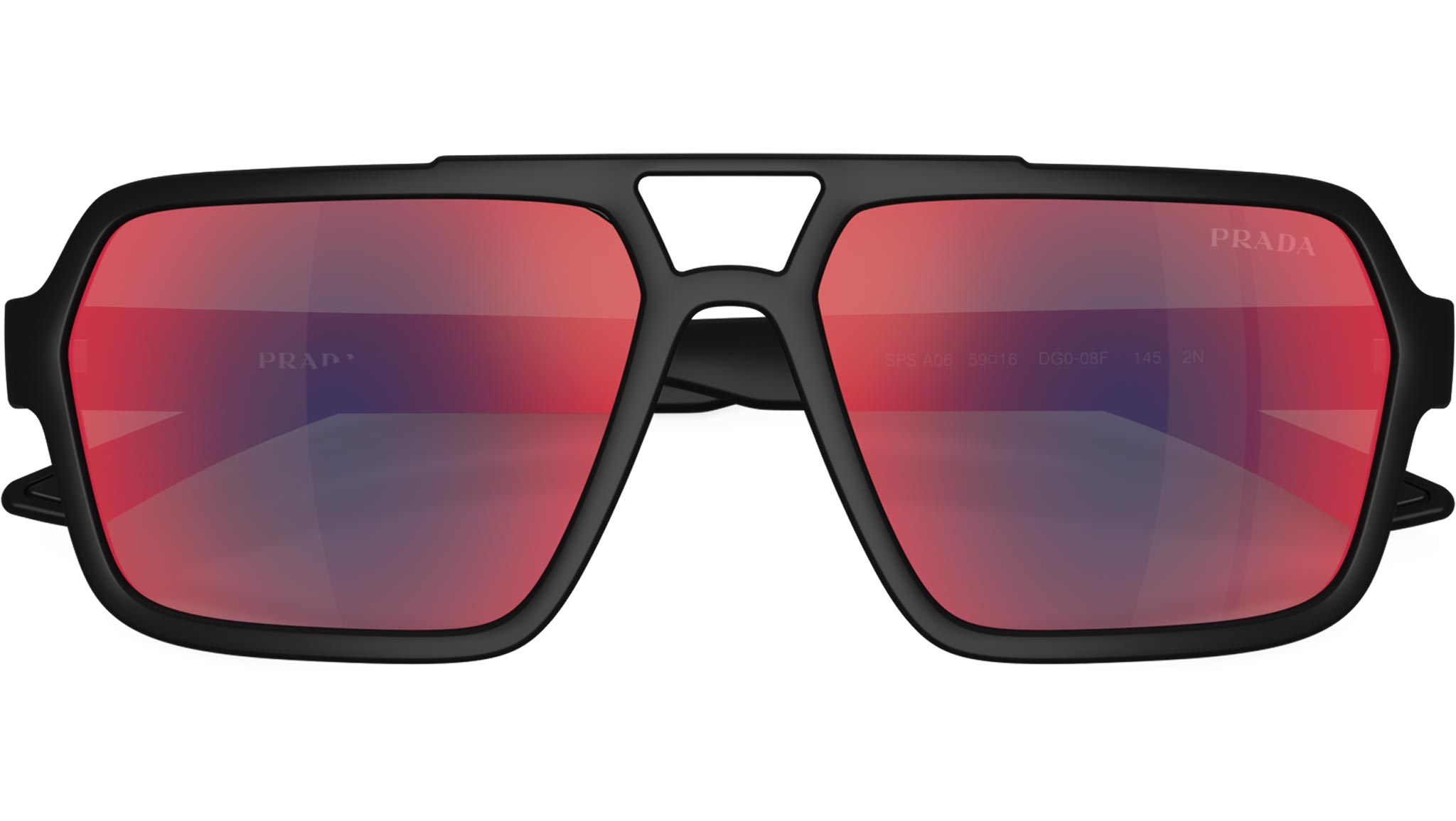Occhiali da sole Prada Linea Rossa PS A06S DG008F uomo con montatura aviatore in iniettato nero gommato e lenti in policarbonato color grigio scuro a specchio blu/rosso. Fit universale. Linea: Lifestyle. Codice modello: PSA06S. Codice colore: DG008F. Made in Italy. Rivenditore autorizzato Prada Sport online. Gli occhiali vengono consegnati con custodia e accessori originali e sono coperti dalla garanzia ufficiale di 12 mesi del produttore.