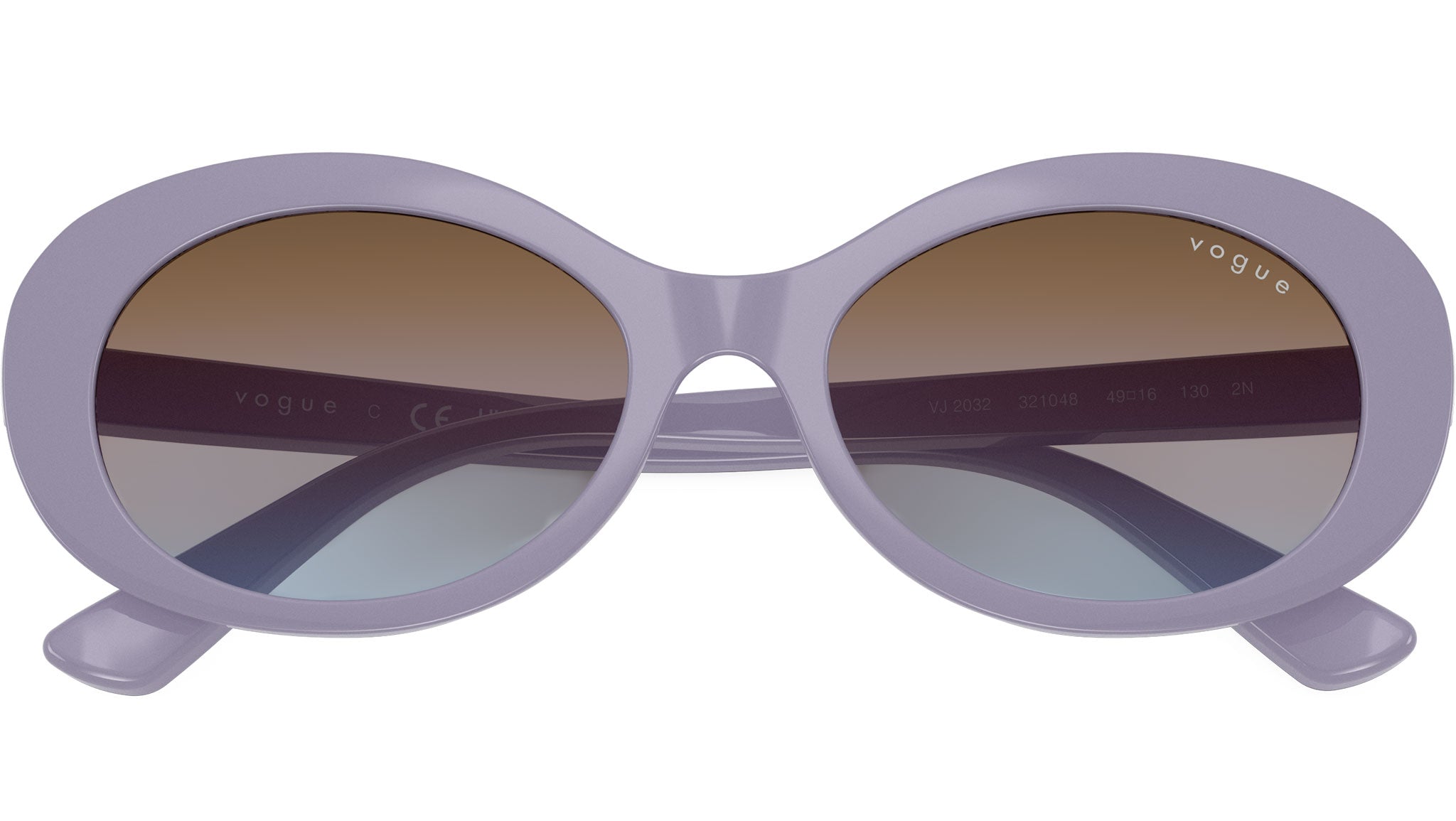 Occhiali da sole Vogue bambina modello VJ2032 321048 con montatura ovale in nylon lilla solido e lenti base 4 in policarbonato azzurro sfumato rosa sfumato marrone. Vestibilità a ponte alto. Linea: Kids. Codice Brand: 0VJ2032. Codice colore: 321048. Rivenditore autorizzato online Vogue Kids. Ogni prodotto Vogue viene consegnato con astuccio originale e accessori ed è coperto da garanzia del produttore di 12 mesi.