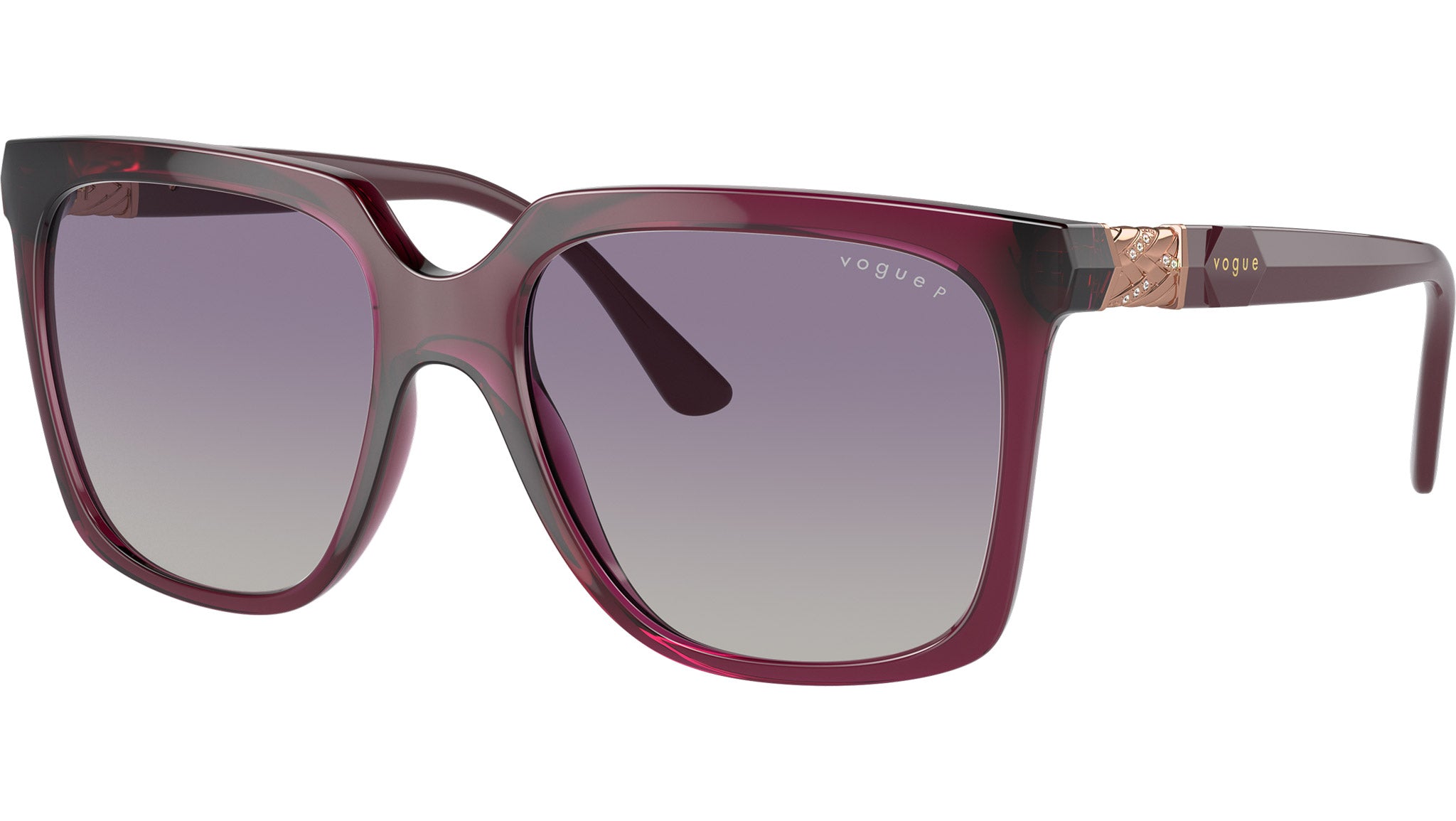 Occhiali da sole Vogue donna modello VO5476SB 29898J con montatura squadrata in iniettato ciliegia trasparente e lenti base 6 in CR-39 grigio sfumato viola polarizzato. Vestibilità a ponte alto. Linea: Evergreen. Codice Brand: 0VO5476SB. Codice colore: 29898J. Rivenditore autorizzato online Vogue Eyewear. Ogni prodotto Vogue viene consegnato con astuccio originale e accessori ed è coperto da garanzia del produttore di 12 mesi.