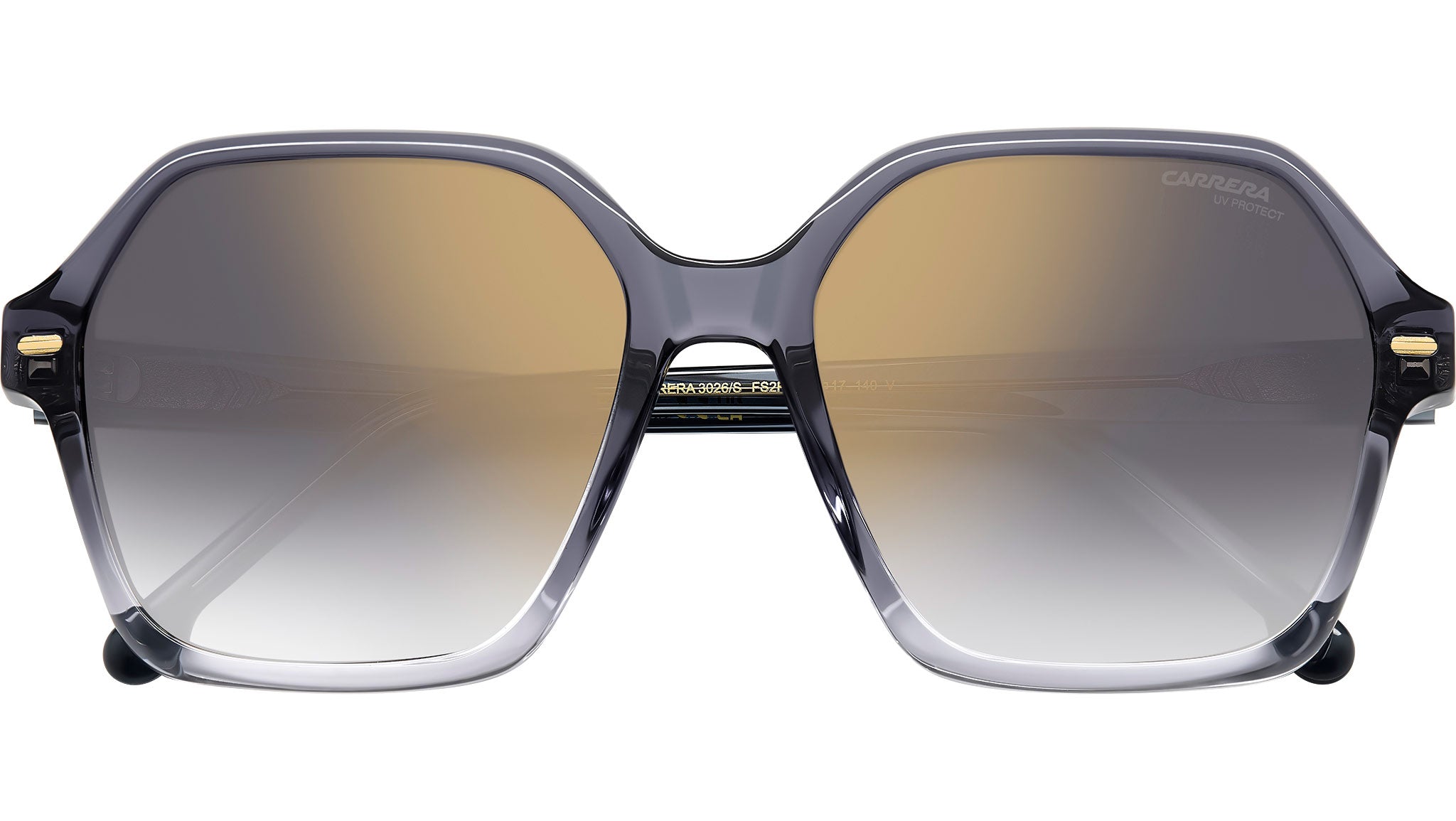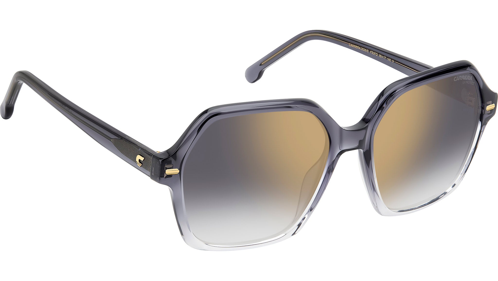 Occhiali da sole Carrera 3026/S FS2 FQ donna con montatura quadrata in acetato grigio cristallo sfumato e lenti demo. Carrera sceglie geometrie soft e ispirazioni retrò per un occhiale da sole squisitamente donna. Gli elementi tipici del brand diventano gioielli che impreziosiscono la montatura: i rivetti in metallo dorato sul frontale e la “C” in rilievo sulle aste. La struttura è in acetato, declinata in diverse opzioni colore che includono sfumature, trasparenze e havana colorata. Le lenti sono personalizzabili con la gradazione preferita, disponibili anche in versione specchiata. Linea: Signature. Codice modello: 206824. Codice colore: FS2 FQ. Rivenditore autorizzato Carrera online. Gli occhiali vengono consegnati con custodia e accessori originali e sono coperti dalla garanzia ufficiale di 12 mesi del produttore.