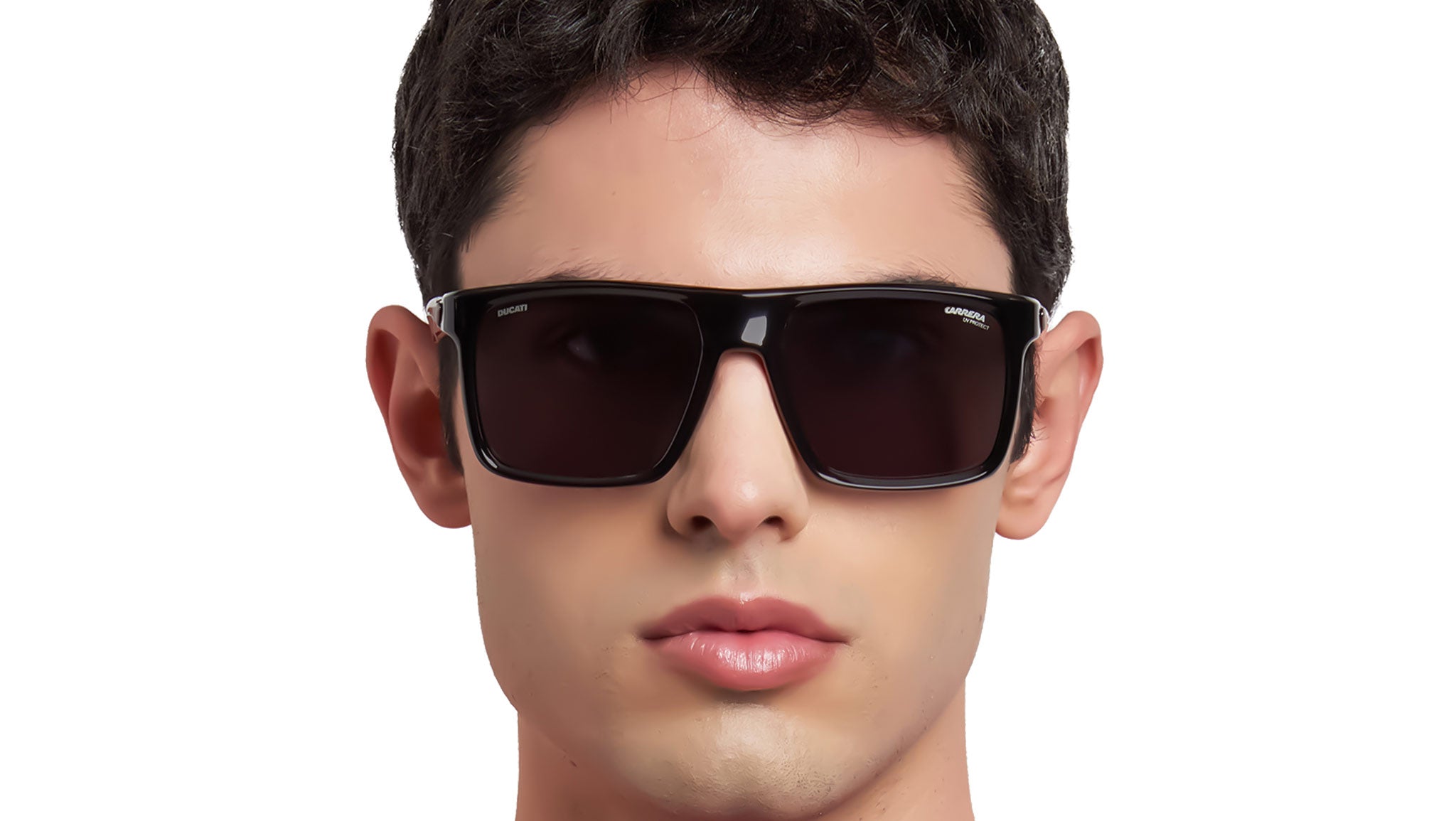 Occhiali da sole Carrera CARDUC 049/S 807 KI uomo con montatura rettangolare in nylon nero e lenti demo. Vincere la gara dello stile è facile, con questi occhiali da sole Carrera | Ducati. Il loro carattere grintoso sta tutto nella montatura sfaccettata. Le aste sono il dettaglio chiave: ricalcano il design delle moto Ducati, con inserto metallico e logo, ancora più impavide nelle versioni con accenni di colore. Linea: Paddock. Codice modello: 207874. Codice colore: 807 KI. Rivenditore autorizzato Carrera online. Gli occhiali vengono consegnati con custodia e accessori originali e sono coperti dalla garanzia ufficiale di 12 mesi del produttore.