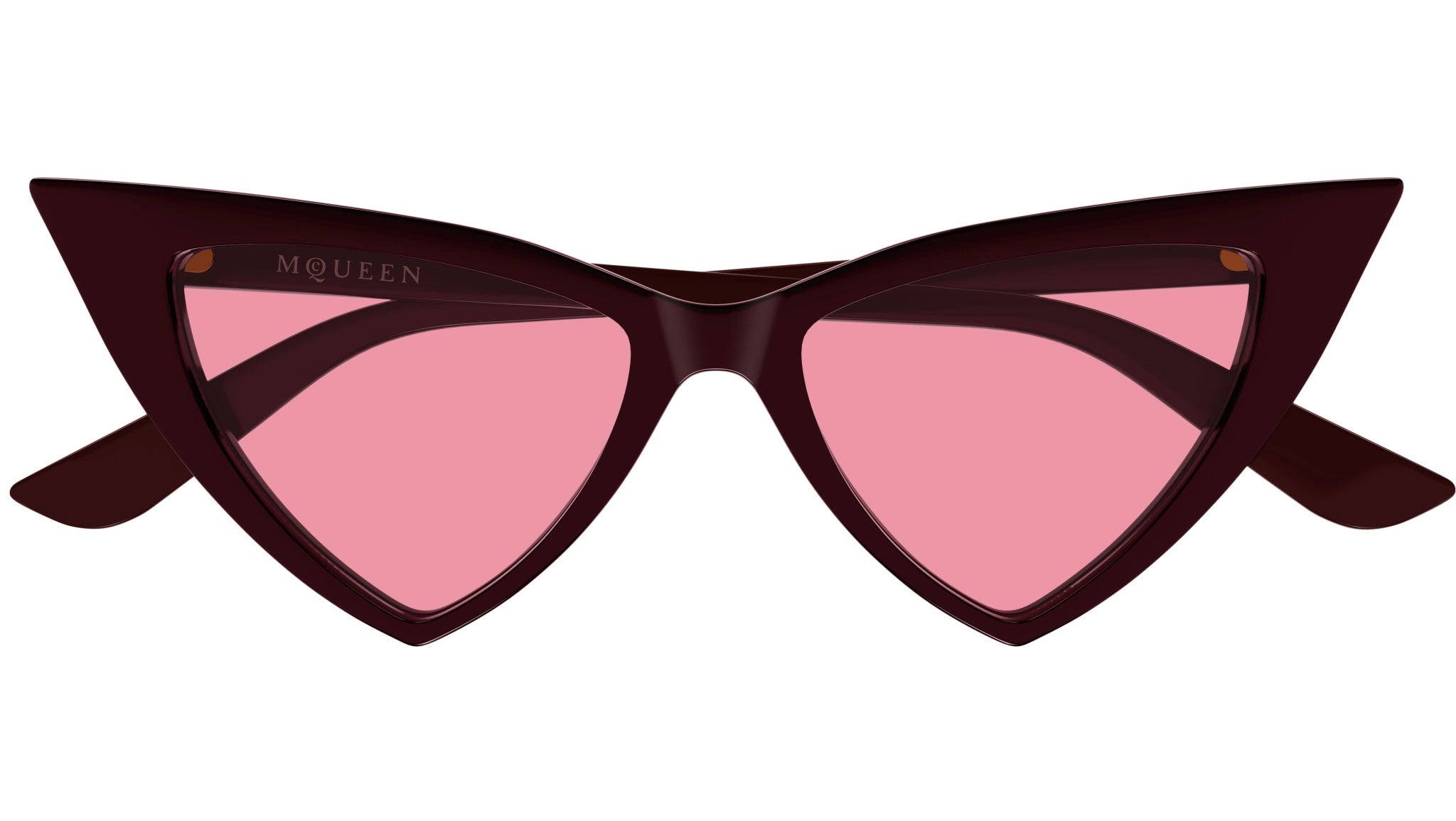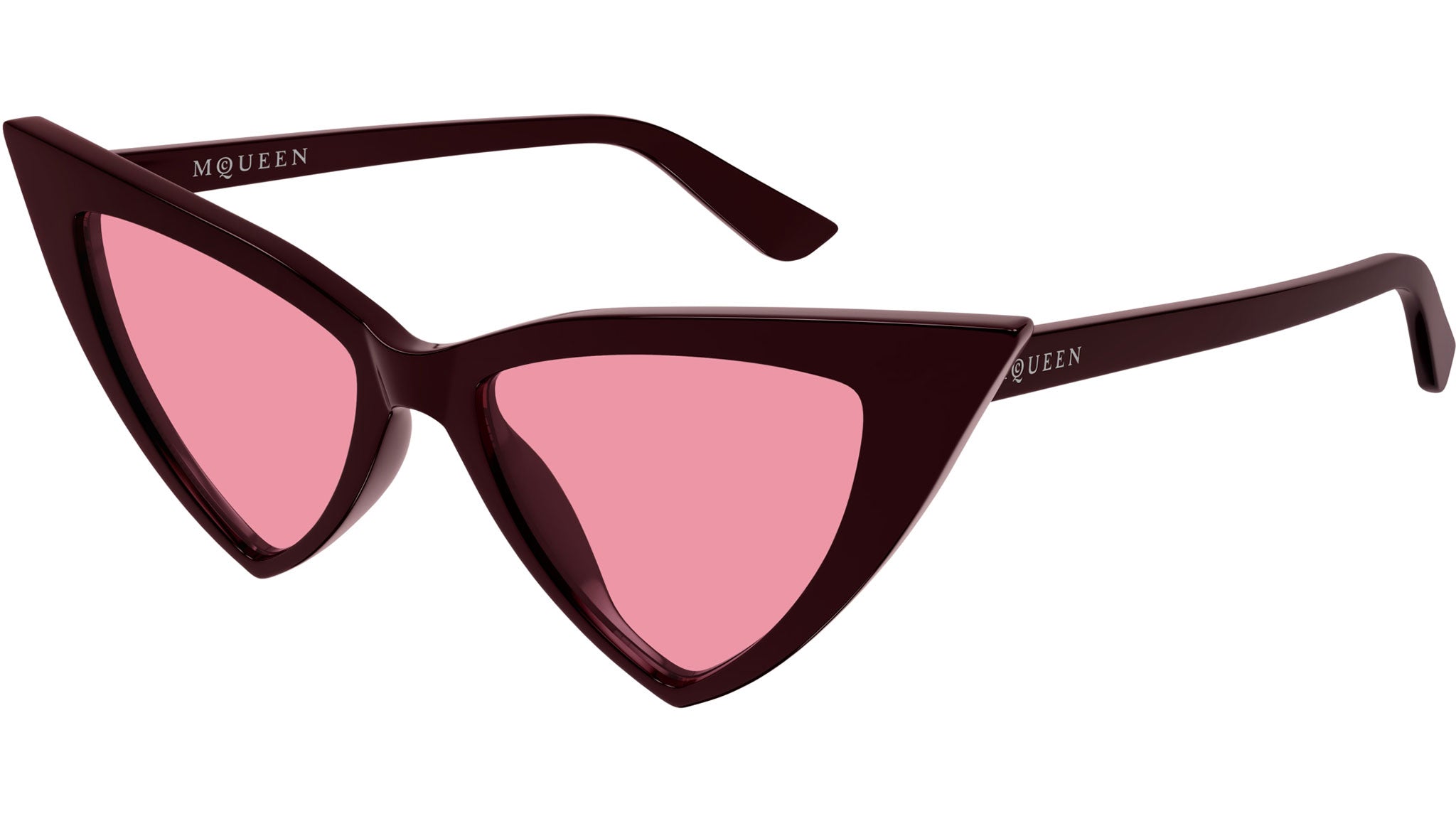 Occhiali da sole Alexander McQueen Logo modello AM0518S in acetato riciclato cat eye codice colore 004 bordeaux intenso lucido con aste rosso e lenti color ciliegia solido. Rivenditore autorizzato Alexander McQueen online. Gli occhiali vengono consegnati con custodia e accessori originali e sono coperti dalla garanzia ufficiale di 12 mesi del produttore.