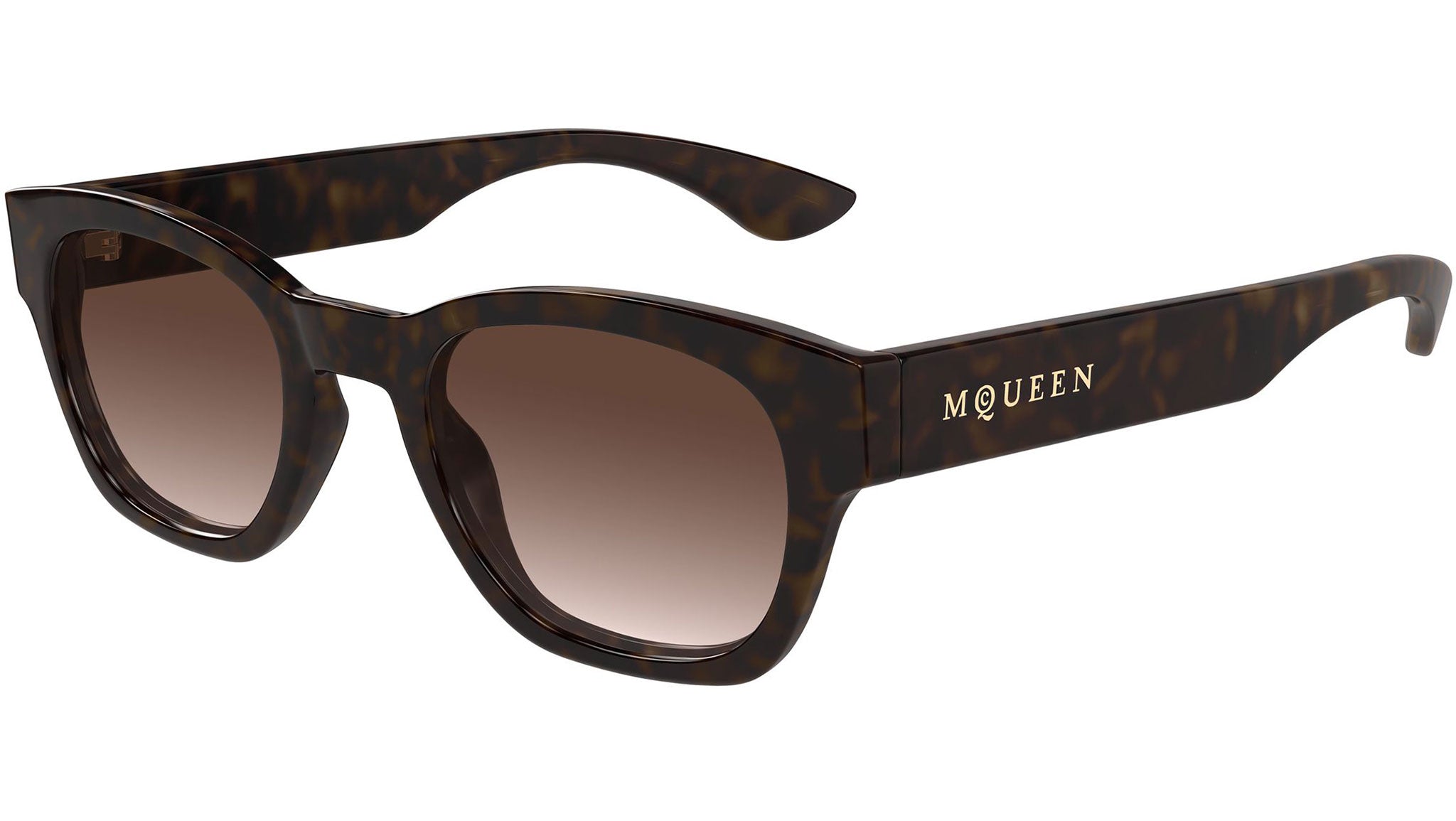 Occhiali da vista Alexander McQueen Logo modello AM0530S in acetato riciclato panthos codice colore 002 avana scuro lucido con aste avana e marrone sfumato. Rivenditore autorizzato Alexander McQueen online. Gli occhiali vengono consegnati con custodia e accessori originali e sono coperti dalla garanzia ufficiale di 12 mesi del produttore.
