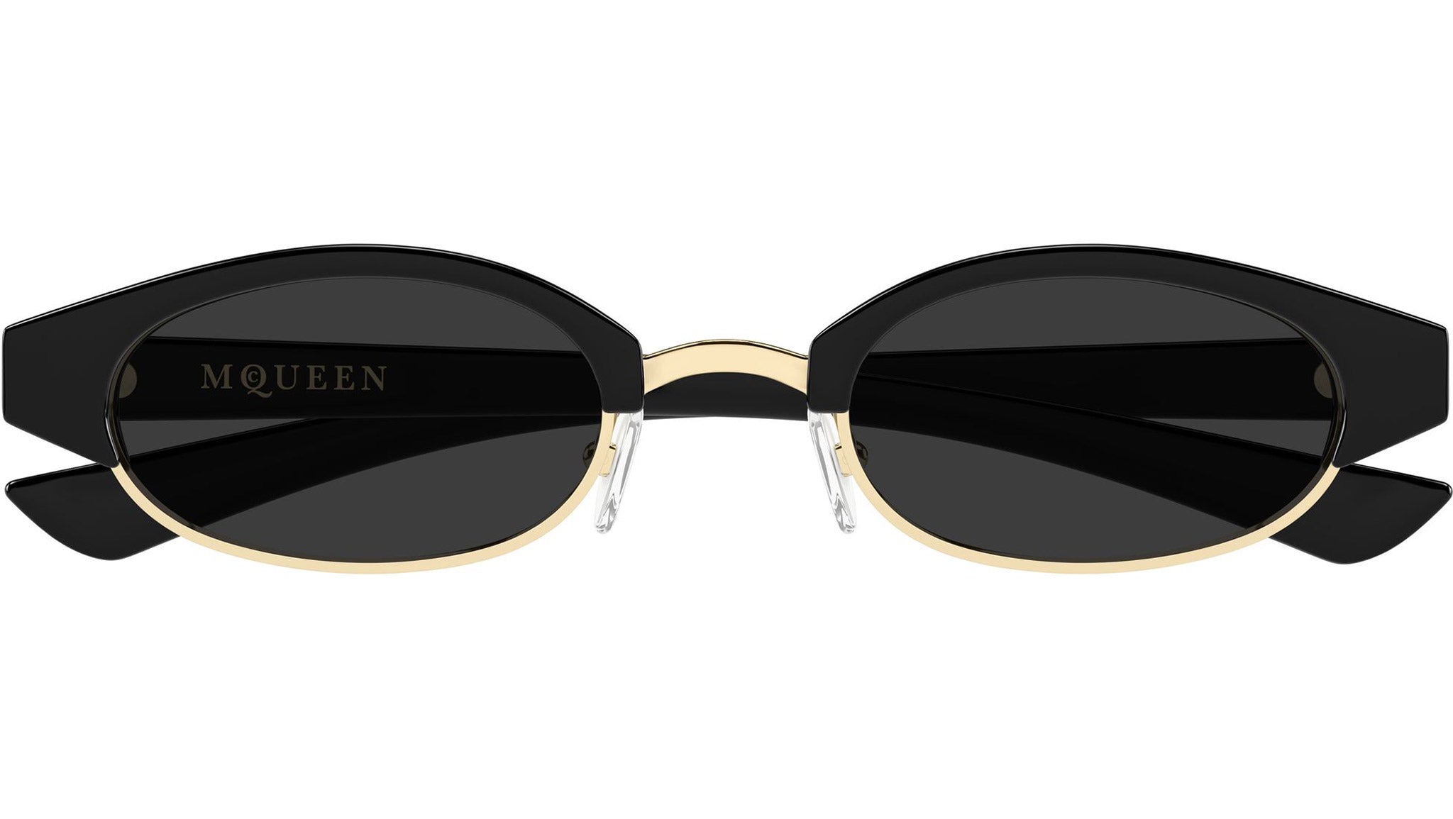 Occhiali da sole Alexander McQueen Logo modello AM0534S in acetato riciclato panthos codice colore 001 nero lucido tinta unita con aste nero e lenti color grigio tinta unita. Rivenditore autorizzato Alexander McQueen online. Gli occhiali vengono consegnati con custodia e accessori originali e sono coperti dalla garanzia ufficiale di 12 mesi del produttore.