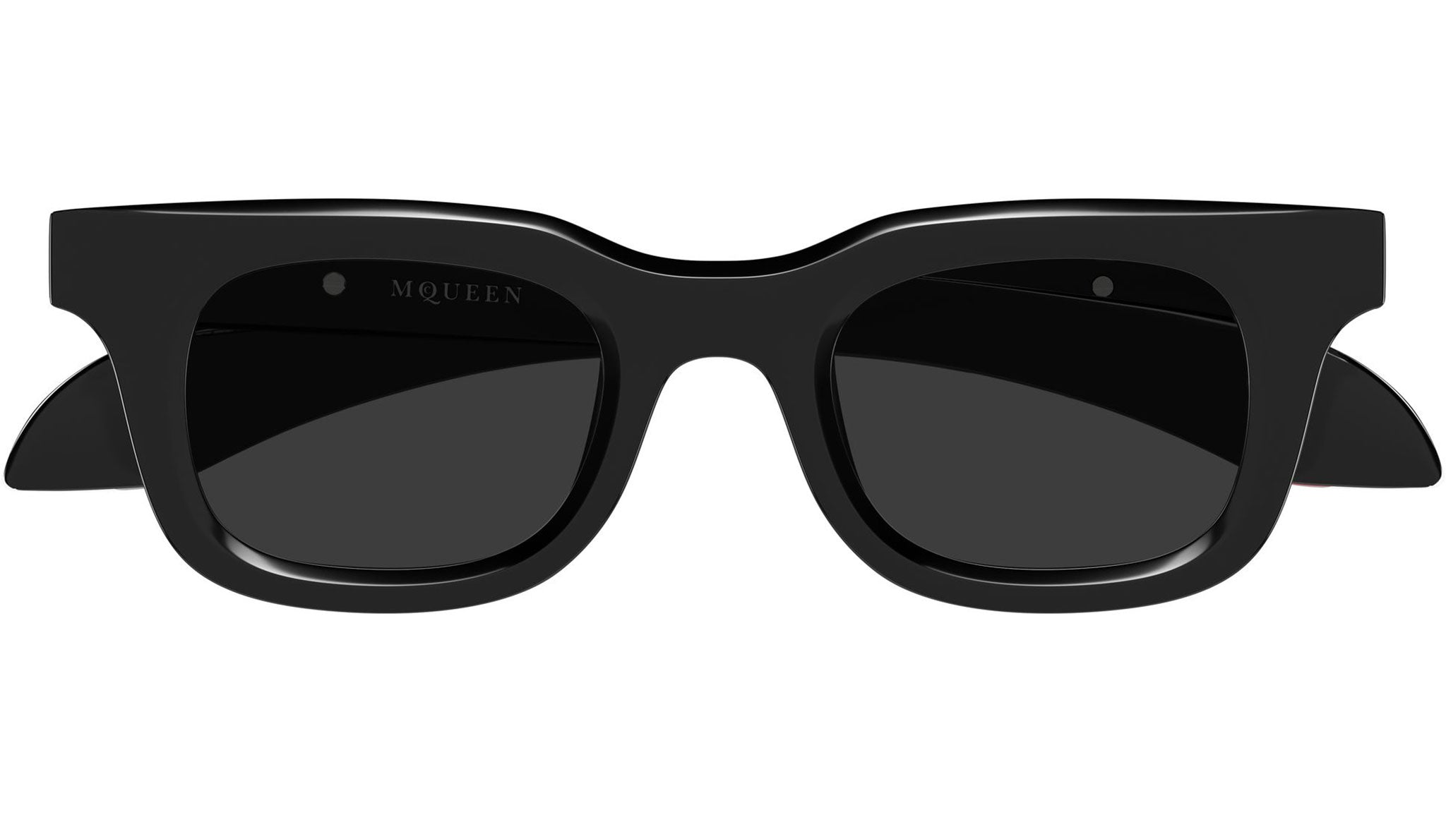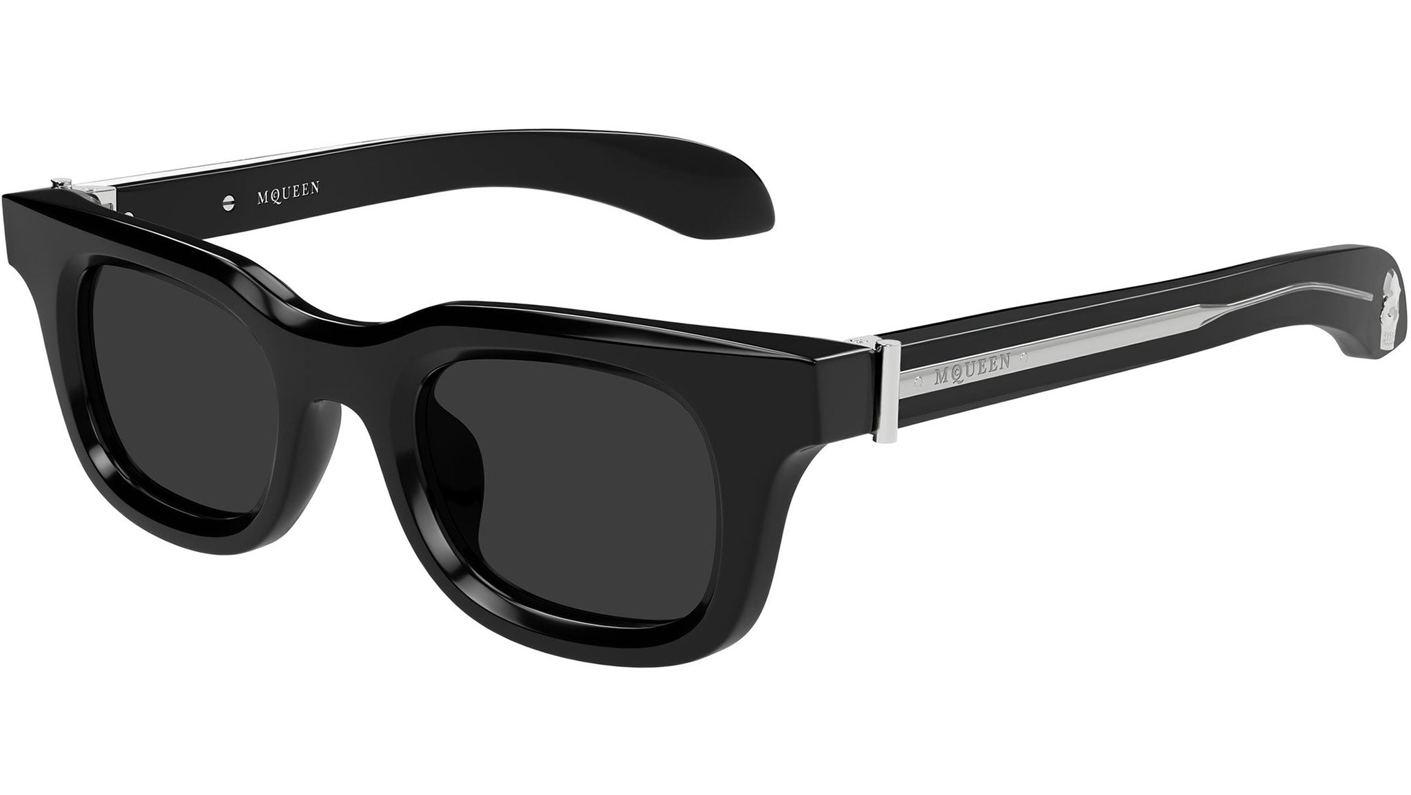 Occhiali da sole Alexander McQueen AM0547S 001 uomo con montatura rettangolare in acetato riciclato nero lucido tinta unita e lenti grigio tinta unita. Linea: Skull. Codice modello: AM0547S. Codice colore: 001. Made in Japan. Rivenditore autorizzato Alexander McQueen online. Gli occhiali vengono consegnati con custodia e accessori originali e sono coperti dalla garanzia ufficiale di 12 mesi del produttore.
