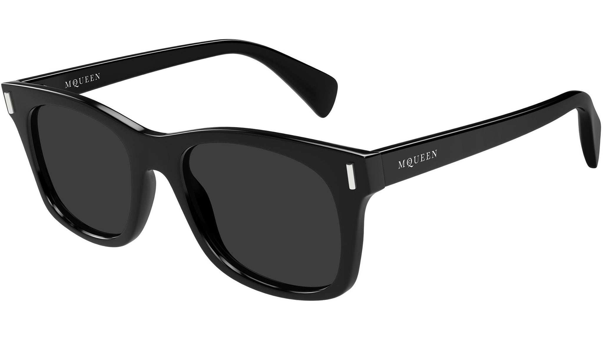 Occhiali da sole Alexander McQueen AM0551S 001 uomo con montatura rettangolare in acetato riciclato nero lucido tinta unita e lenti grigio tinta unita. Linea: T-Bar. Codice modello: AM0551S. Codice colore: 001. Made in Italy. Rivenditore autorizzato Alexander McQueen online. Gli occhiali vengono consegnati con custodia e accessori originali e sono coperti dalla garanzia ufficiale di 12 mesi del produttore.